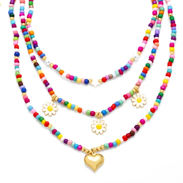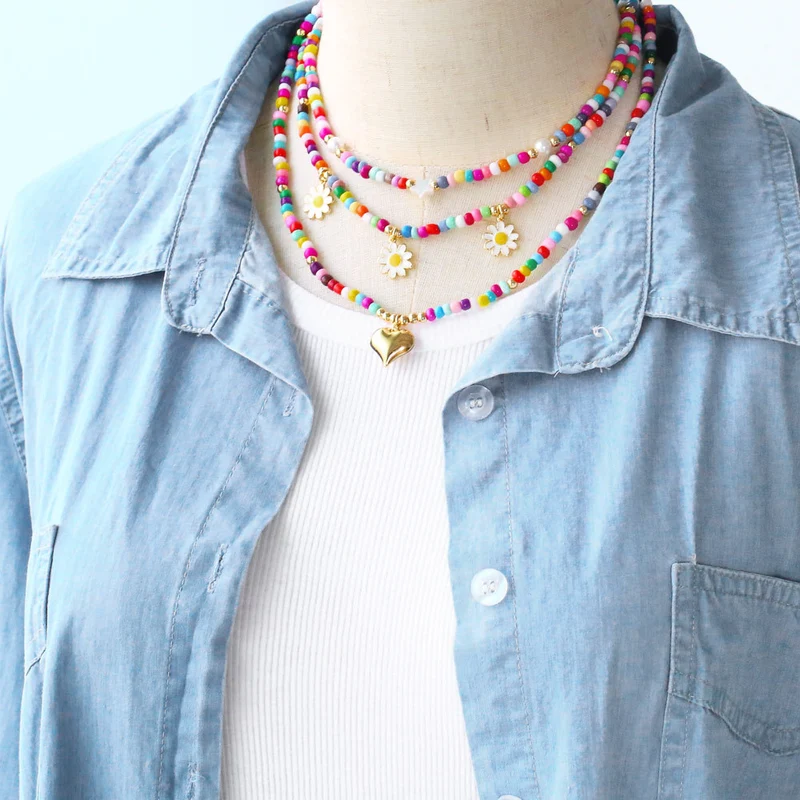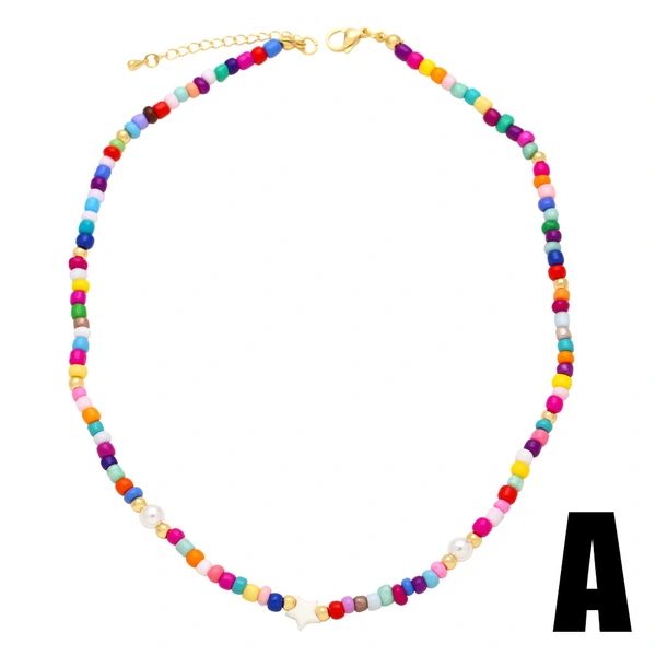 Collier de perles de riz colorées de style bohème, chaîne de cou et de clavicule faite à la main, vente en gros, nkb642
