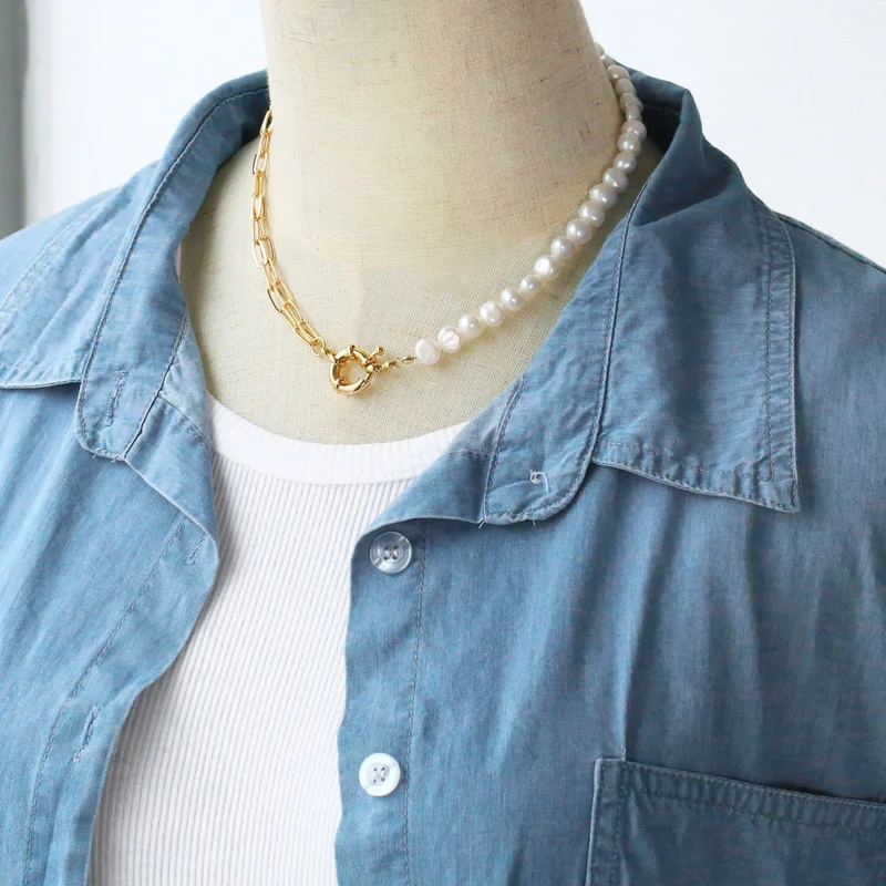 Collier de perles double couche de style européen et américain pour femme, chaîne de clavicule hip-hop à épissure froide, chaîne de pull nkb487