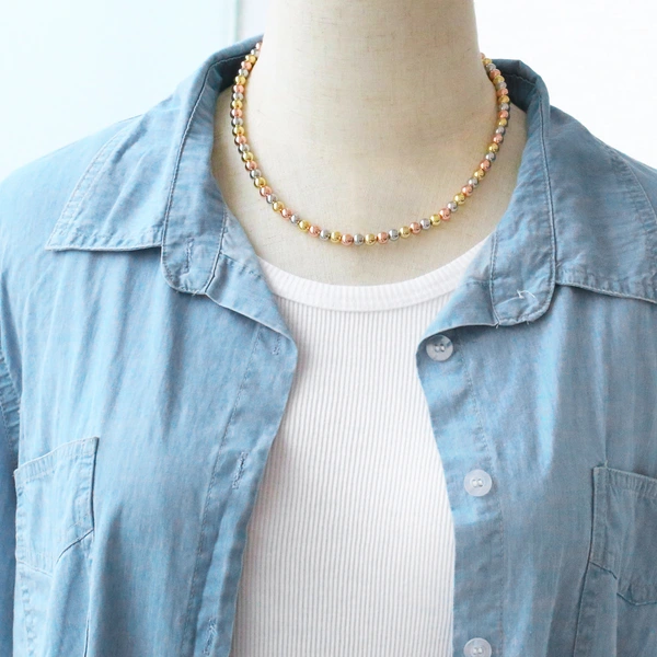 Collier de perles en cuivre pour hommes et femmes, tendance hip-hop européenne et américaine, tendance ...