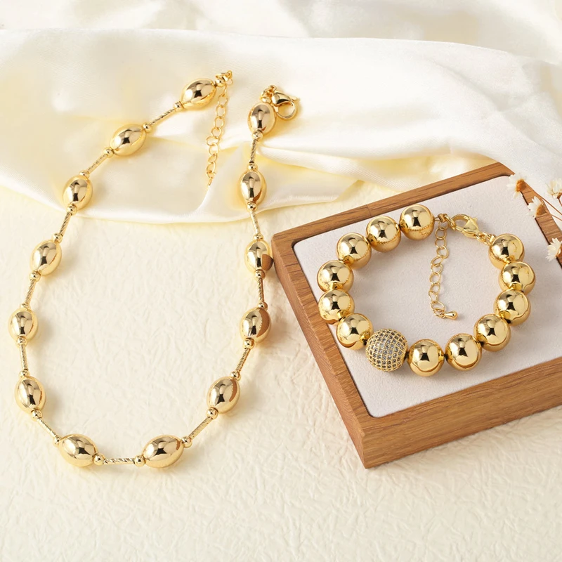 Collier de perles fait main pour femme, bijou en plaqué cuivre, bracelet européen et américain en or 18 carats, nka047