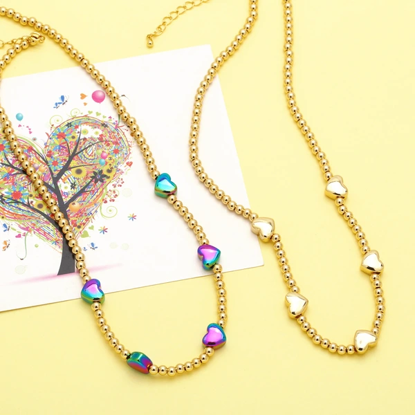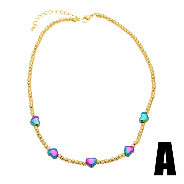 Collier de perles hip-hop européen et américain pour femme, chaîne de clavicule polyvalente en forme de cœur colorée, nkb144