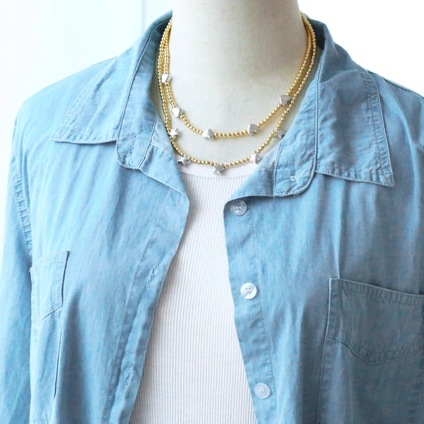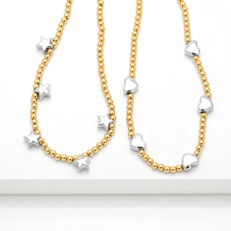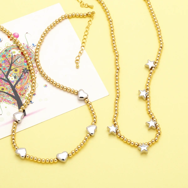 Collier de perles rondes en or 18 carats plaqué cuivre, style unisexe européen et américain, chaîne de clavicule personnalisée en forme d'étoile à cinq branches NKB045