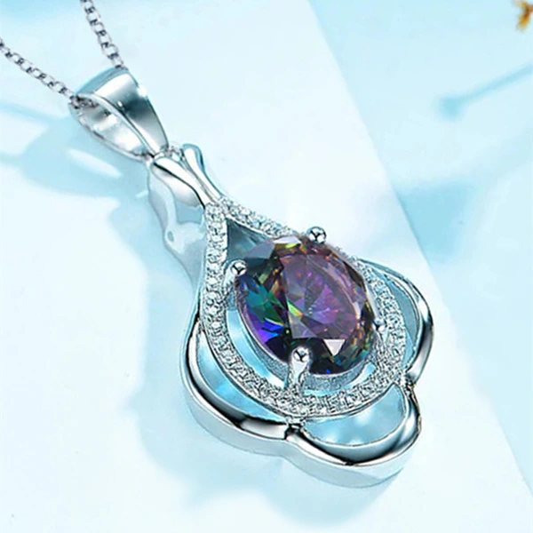 Nouveau produit, simulation de diffusion en direct, pendentif de tempérament, collier triangulaire en forme de cœur de l'océan, collier rétro en forme de cœur battant
