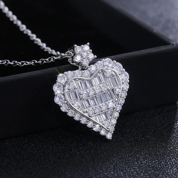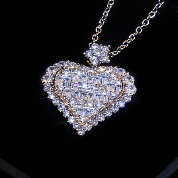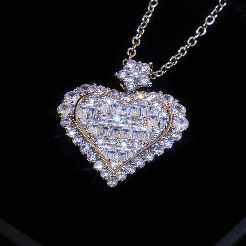 Collier en forme de cœur en zircon carré en T, collier de fiançailles en forme de cœur en sucre en zircon carré en T et incrustation en grappe