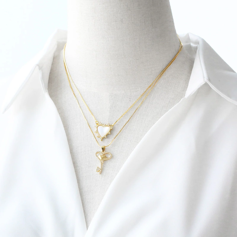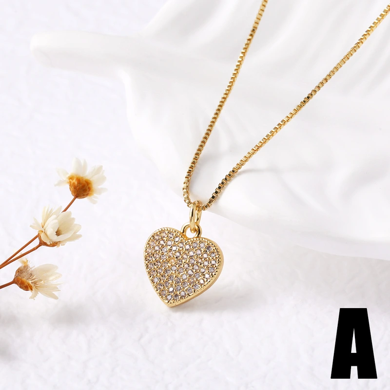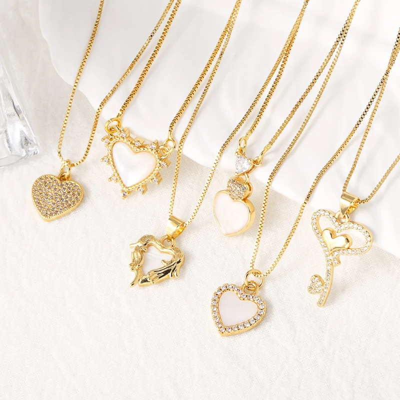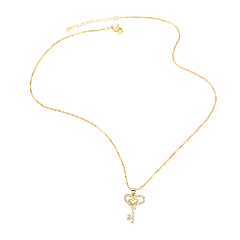 Collier en forme de cœur en zircon plaqué cuivre et or 18 carats, chaîne de clavicule, très populaire en Europe et aux États-Unis, nkp35
