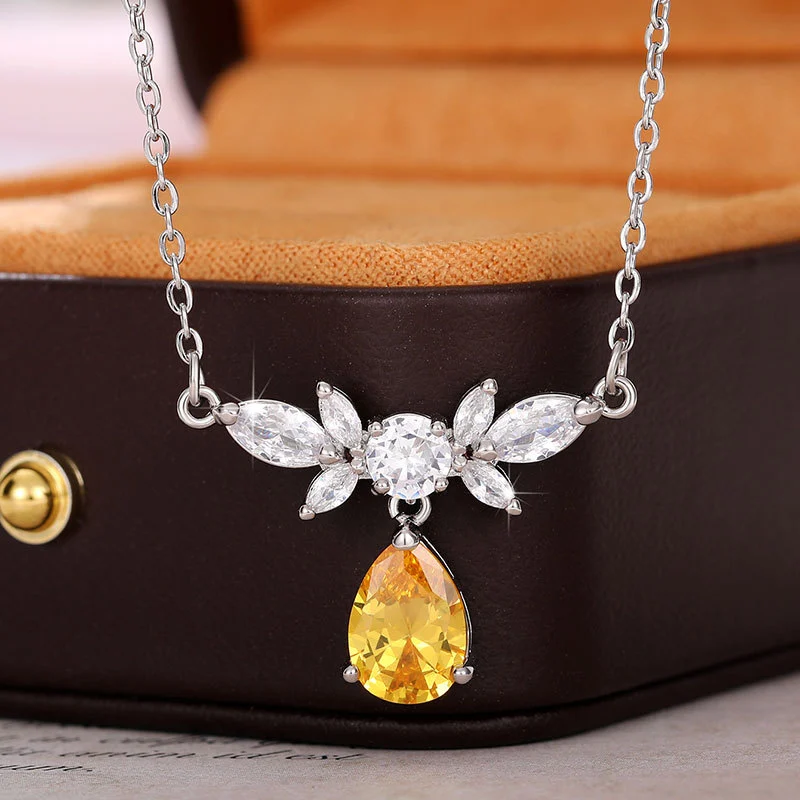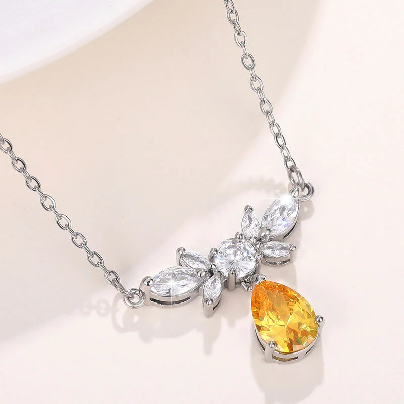 Collier en forme de larme pour femme, pendentif en forme de poire en forme de larme, en diamant jaune, simulation de collier de clavicule en cristal pour sexe opposé