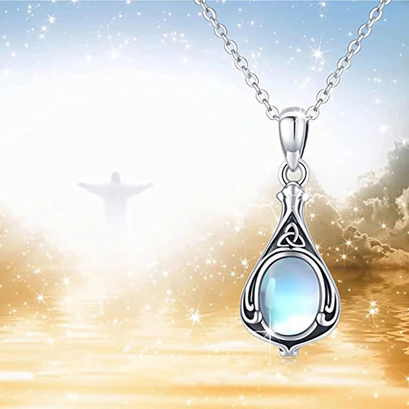 Collier en pierre de lune imitation vigne pour femme, bijou populaire européen et américain, pendentif en argent antique en forme de larme