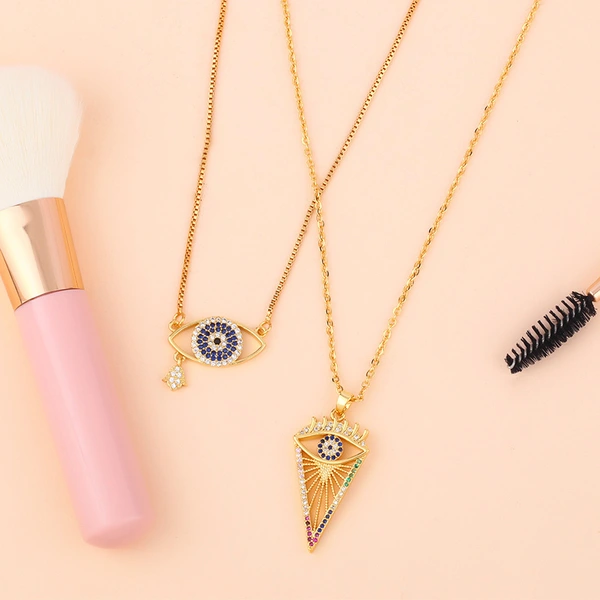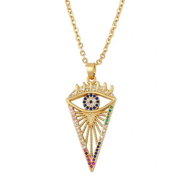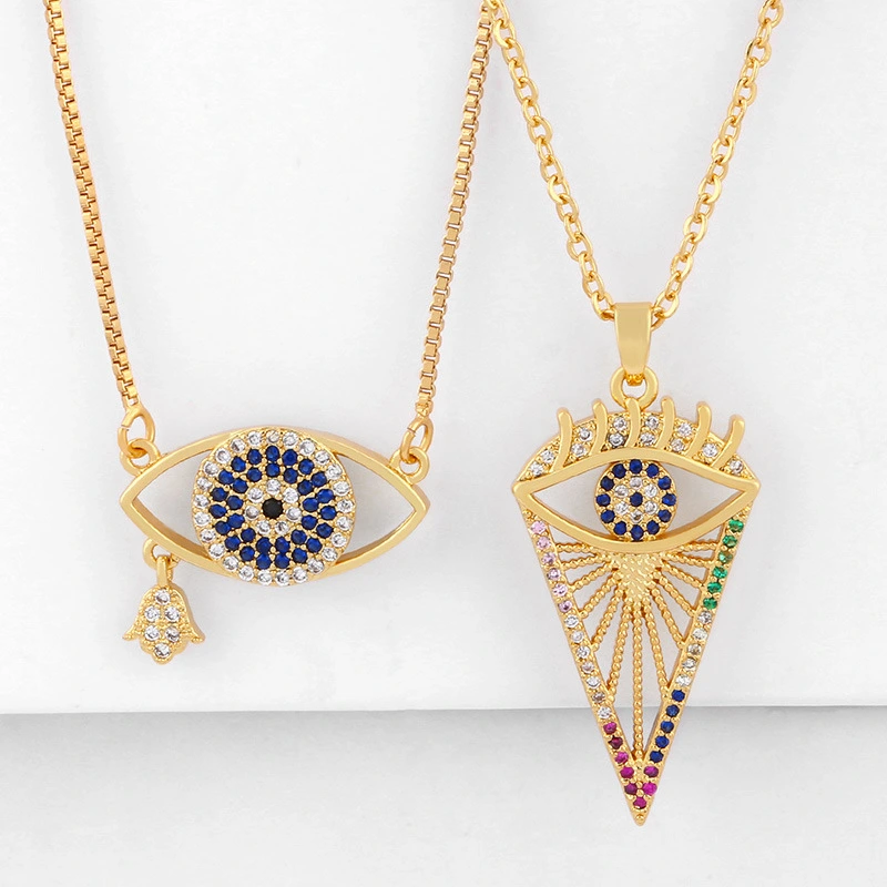 Collier en zircon coloré micro-incrusté de mode européenne et américaine, simple et polyvalent, pendentif œil du diable pour femme, bijoux nkq17