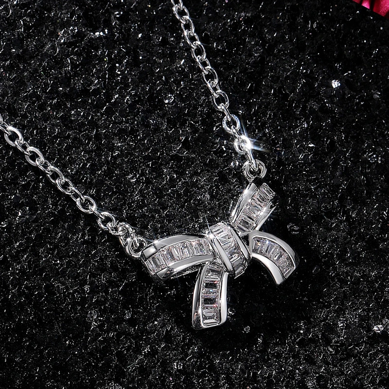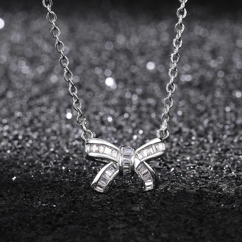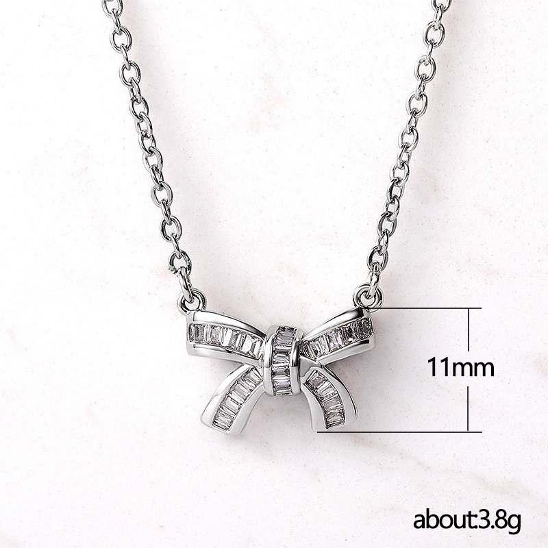 Collier en zircon plaqué cuivre et platine, élégant et simple, avec nœud, collier en gros, vente en gros