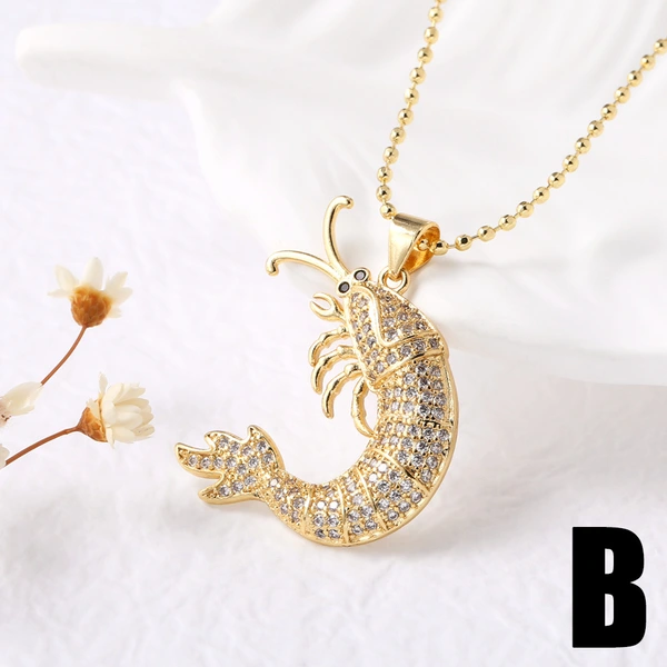 Collier en zircone cubique, petit poisson et crevettes, chaîne de clavicule, vente en gros, nkb290