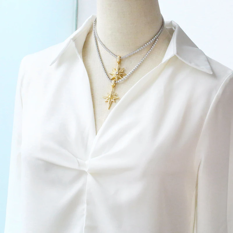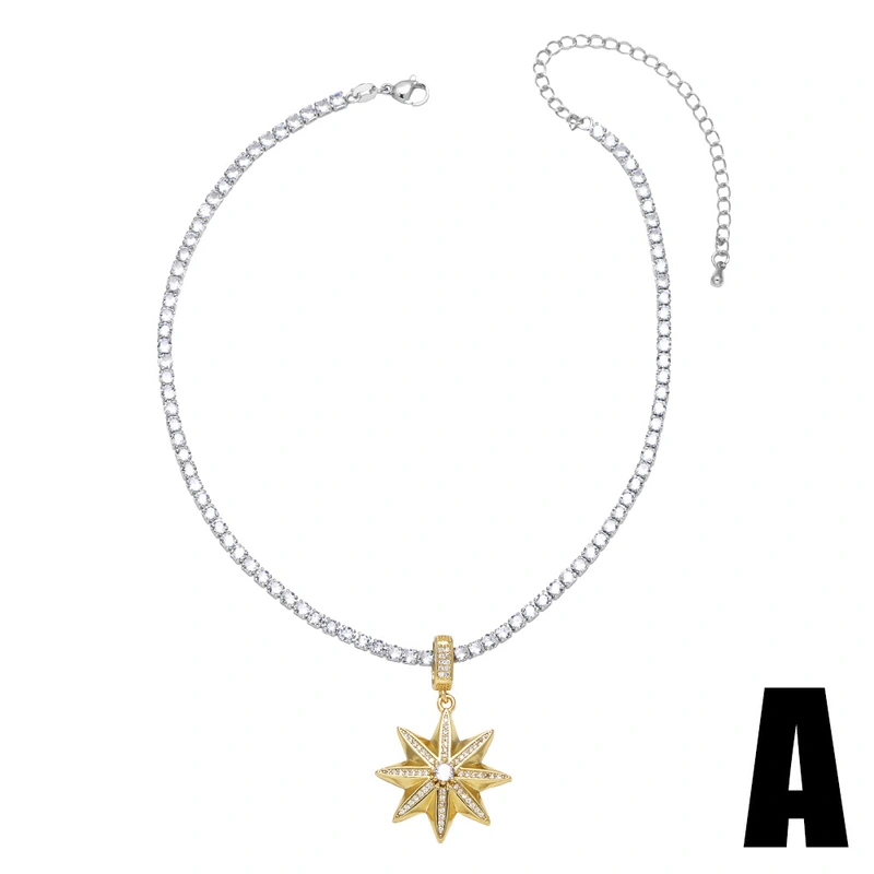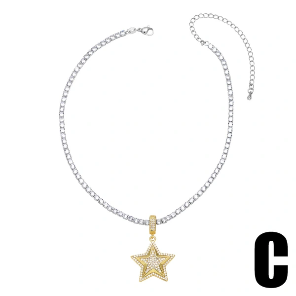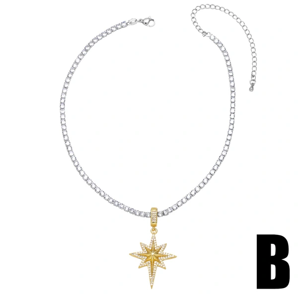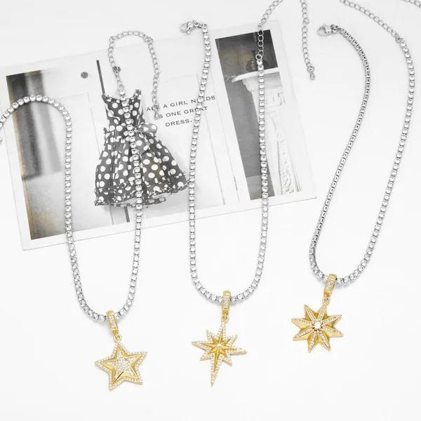 Collier étoile à cinq branches plaqué or, chaîne de clavicule étoile en zircon, style européen et américain, nkt18