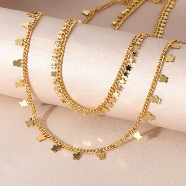 Collier étoile à cinq branches plaqué or haut de gamme pour femme, bijoux européens et américains, pendentif papillon, chaîne de clavicule, nkb886