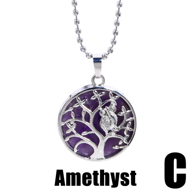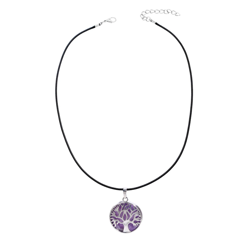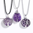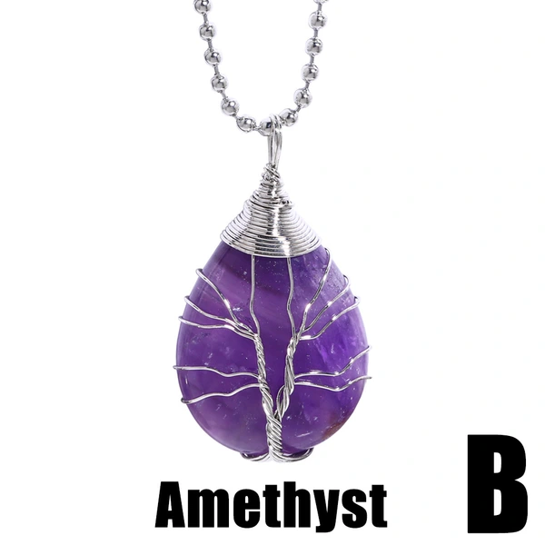 Collier européen et américain avec pendentif en forme de goutte d'eau en fil de cuivre et améthyste pour femme, arbre de vie, nkb707
