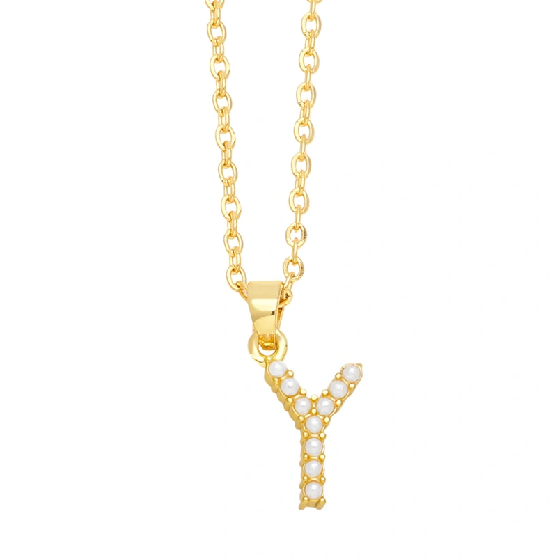 Collier européen et américain en perles d'imitation, 26 lettres, tempérament féminin, simple, lettre anglaise, clavicule, nkn42