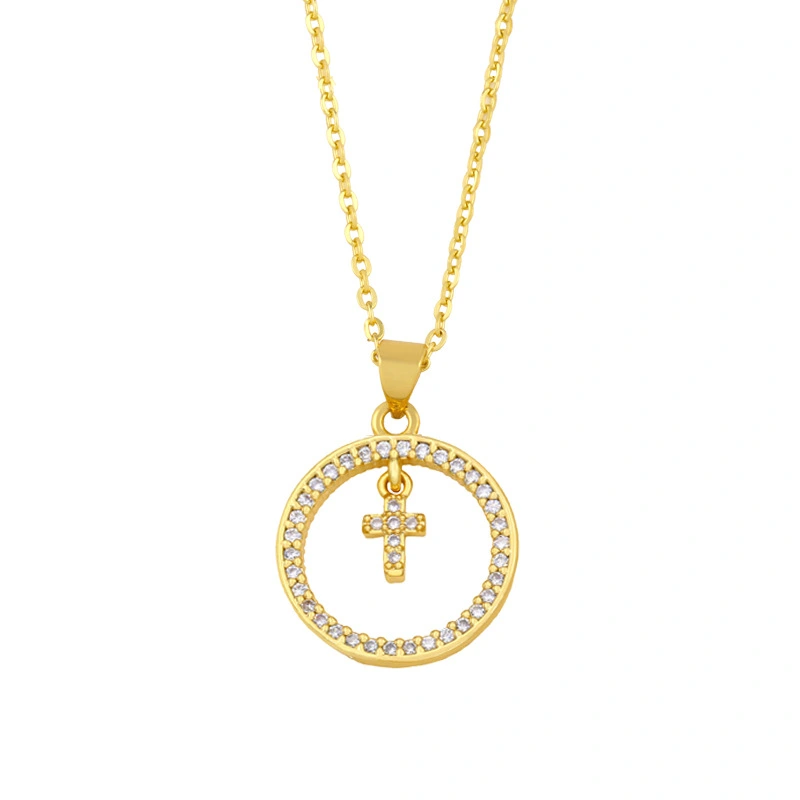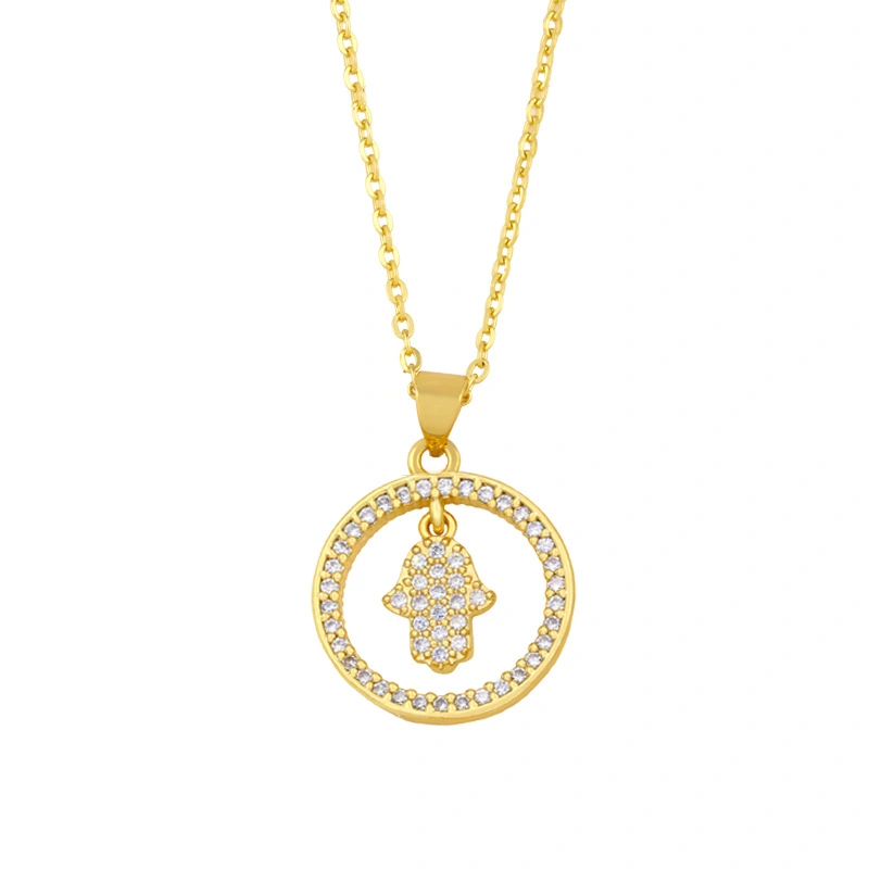 Collier européen et américain pour femme, chaîne de clavicule, géométrique, ronde, creuse, croix, paume, incrustée de zircons, nky19