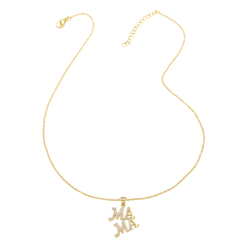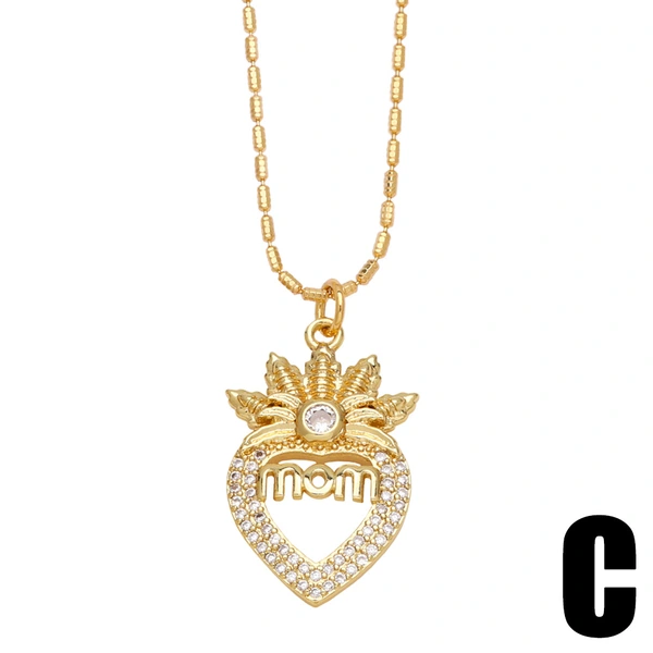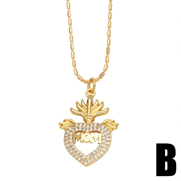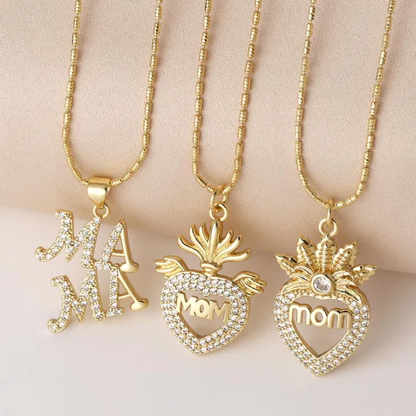 Collier européen et américain pour la fête des mères, chaîne de clavicule en forme de cœur plaqué or avec zircons incrustés, nkq21