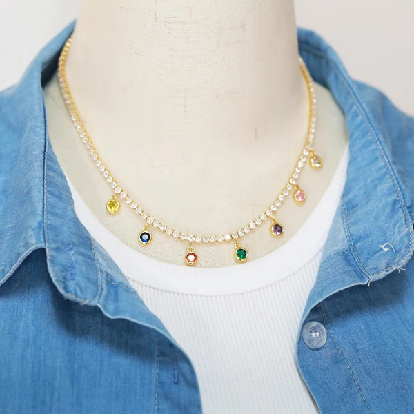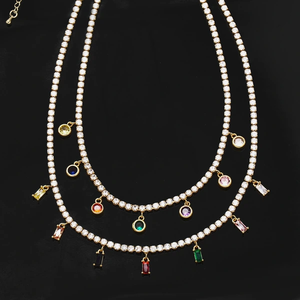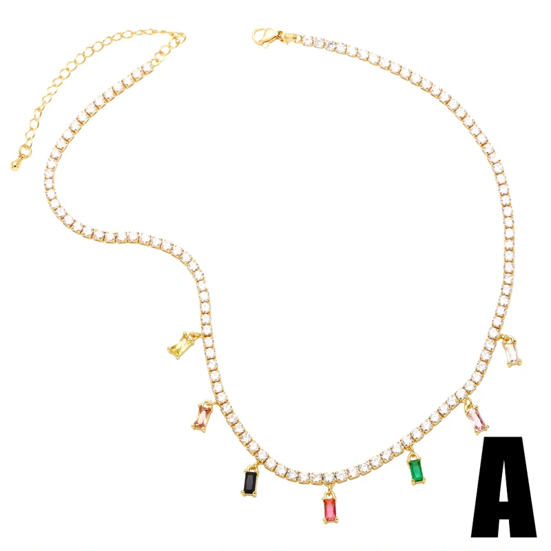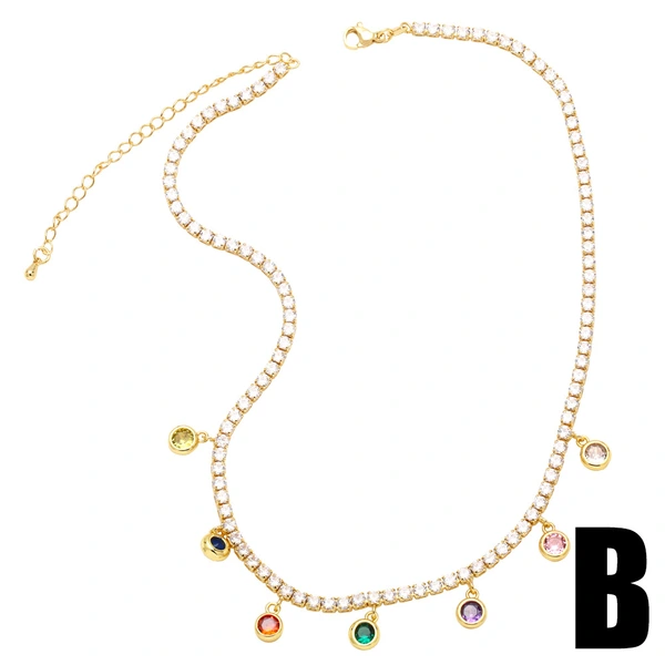 Collier européen et américain simple rétro géométrique rond carré couleur zircon clavicule chaîne niche design femme nkb318
