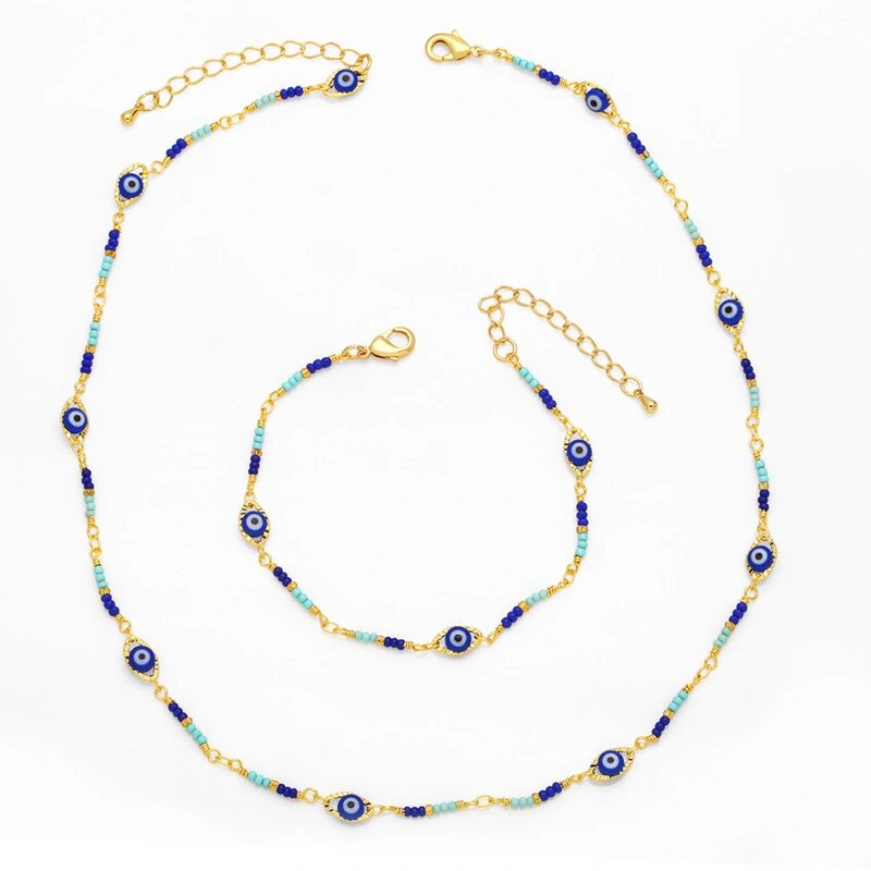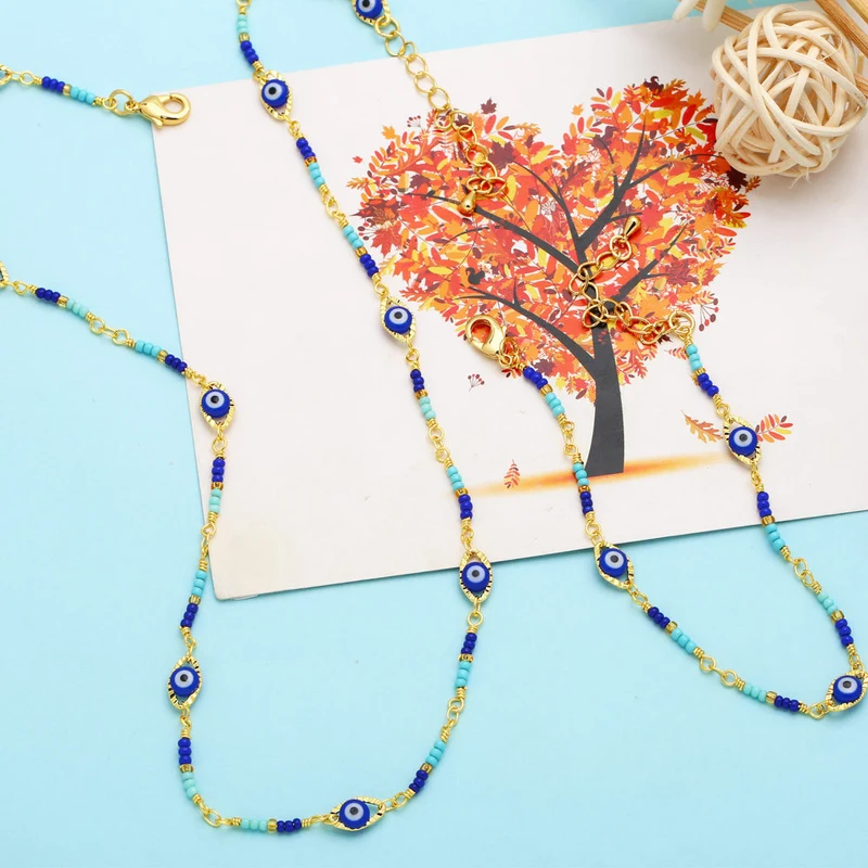 Collier européen et américain style ethnique bohème collier court ras du cou perles de riz collier œil du diable femme nkb784