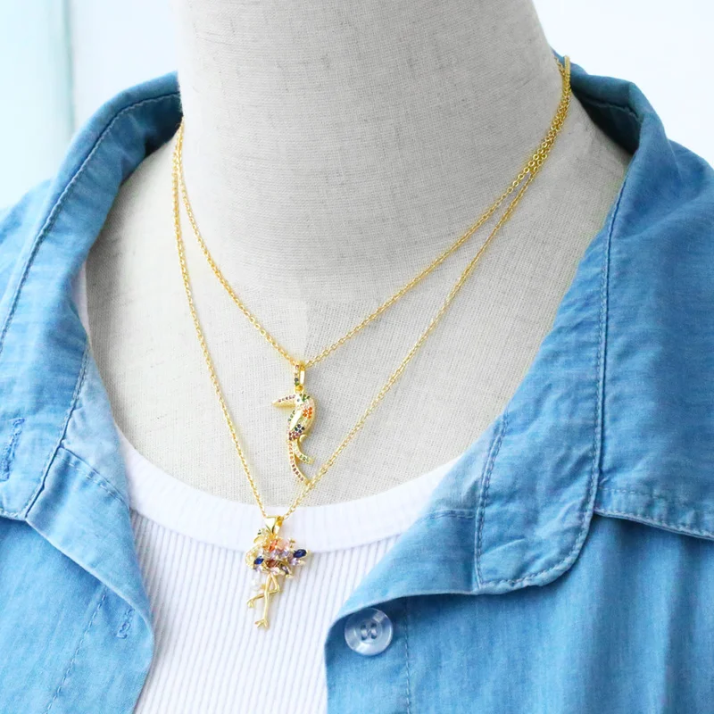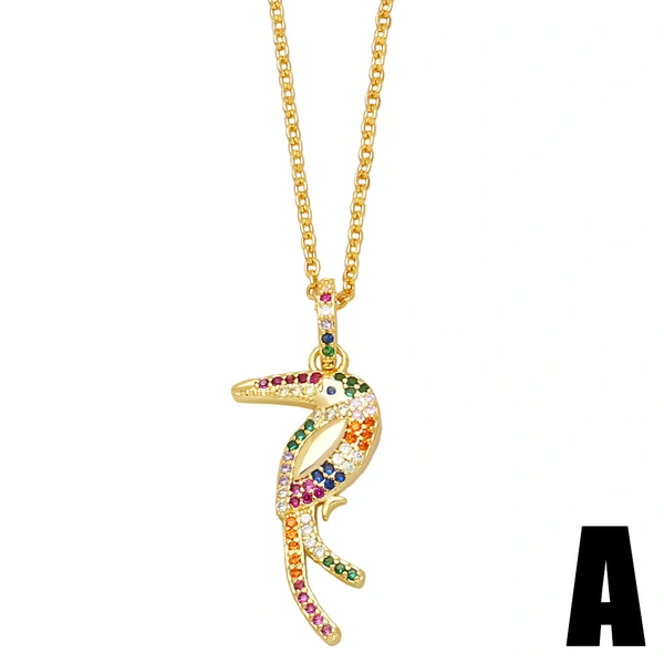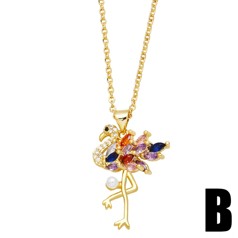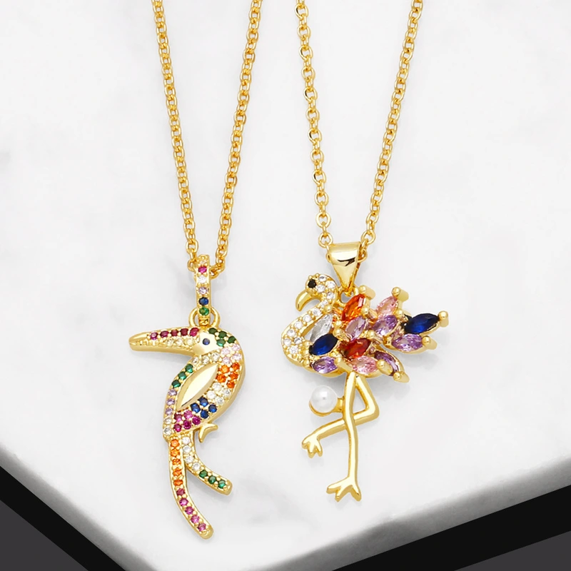 Collier flamant rose personnalisé en zircon coloré, design de niche créatif, pendentif perroquet, nkb730
