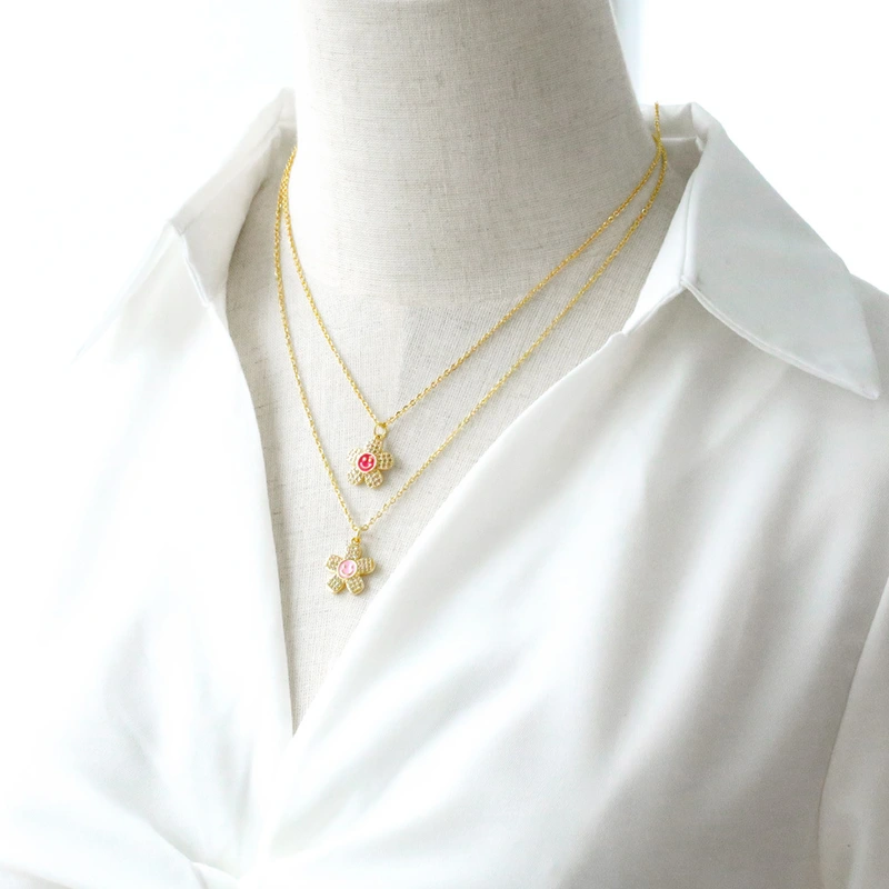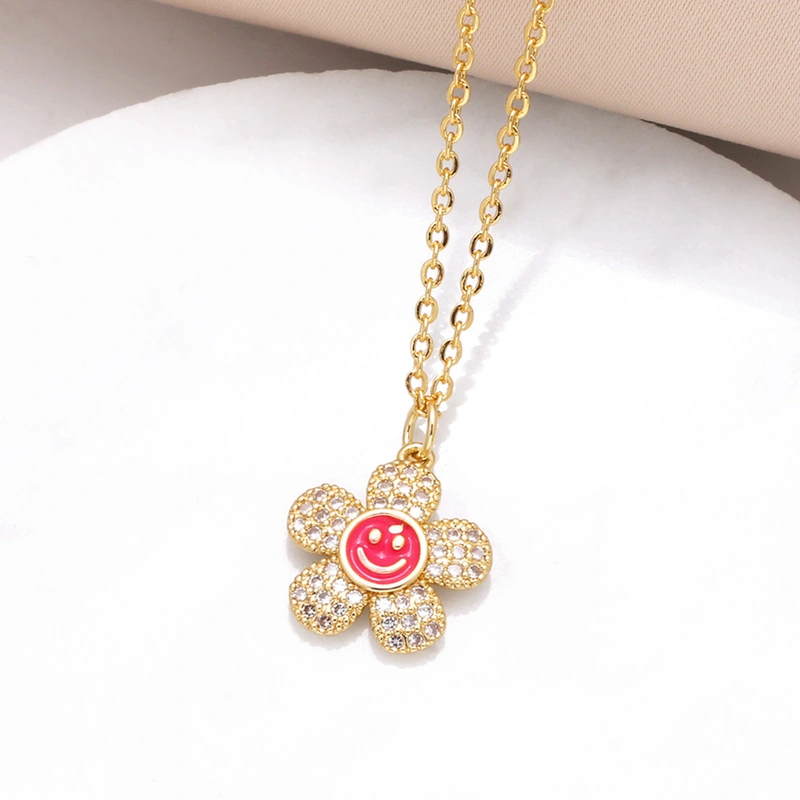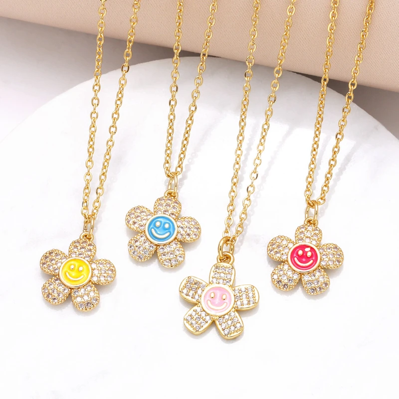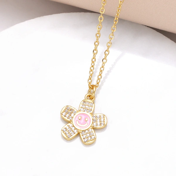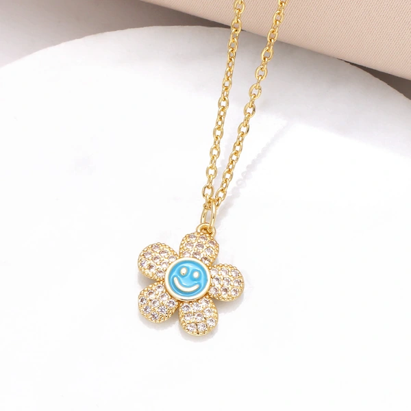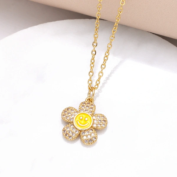Collier fleur plaqué cuivre véritable or, chaîne de clavicule en zircone avec smiley dégoulinant, liquidation comme bijoux nkb275