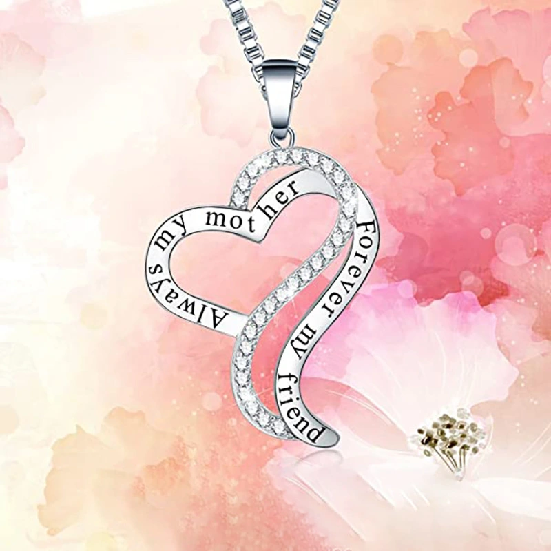 Collier gravé en forme de cœur, double cœur, cadeau d'anniversaire pour mère, fabricant, modèle à succès