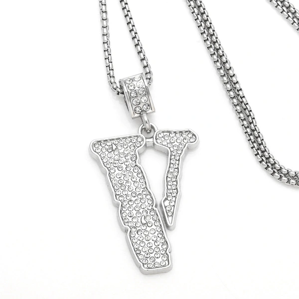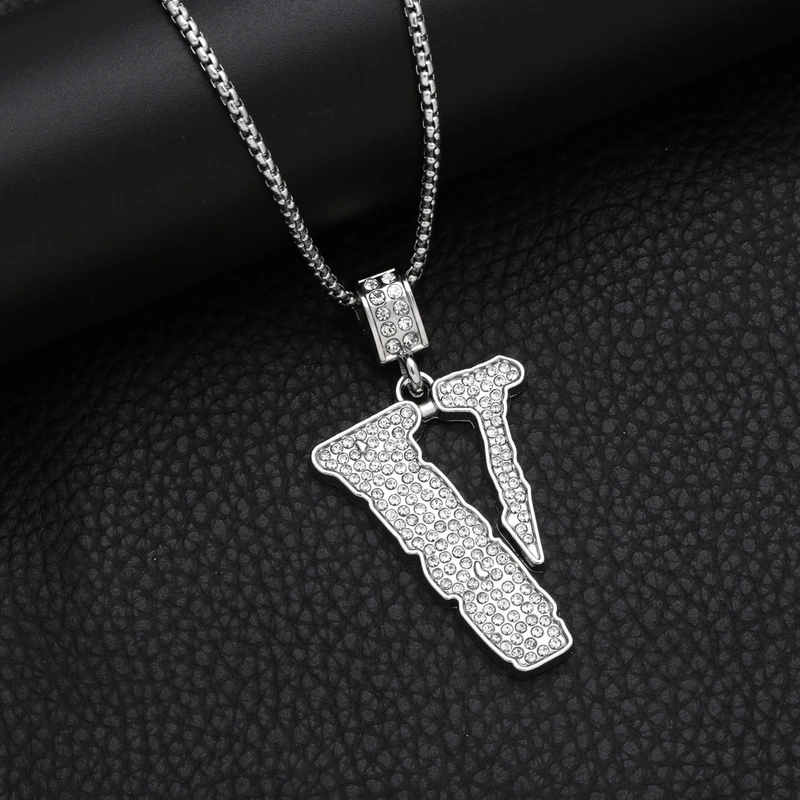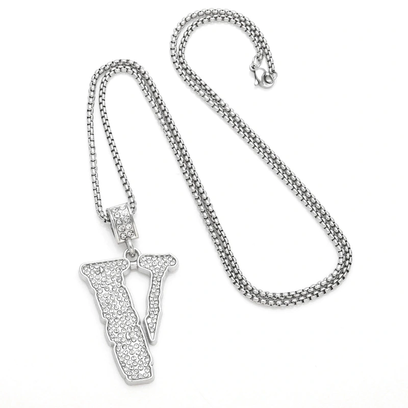 Collier hip-hop pour hommes, pendentif en V entièrement en diamant, chaîne de pull de personnalité, tendance européenne et américaine, nkb291