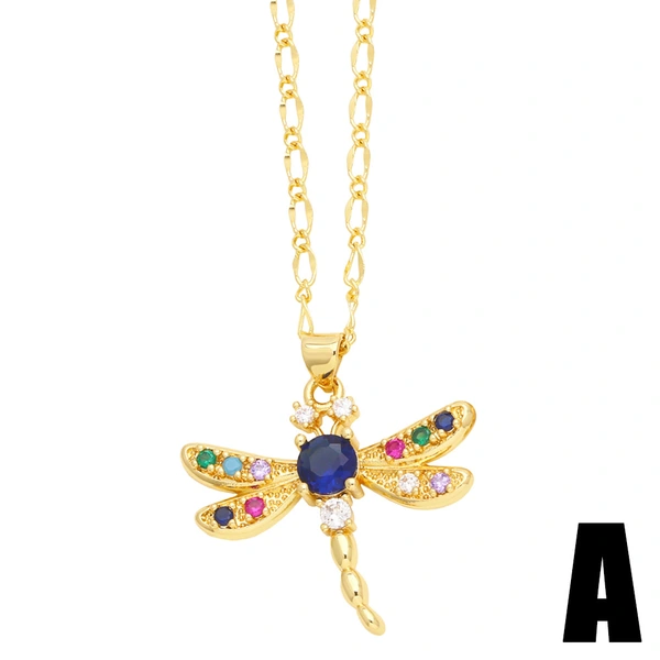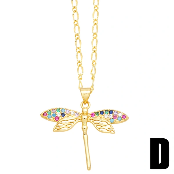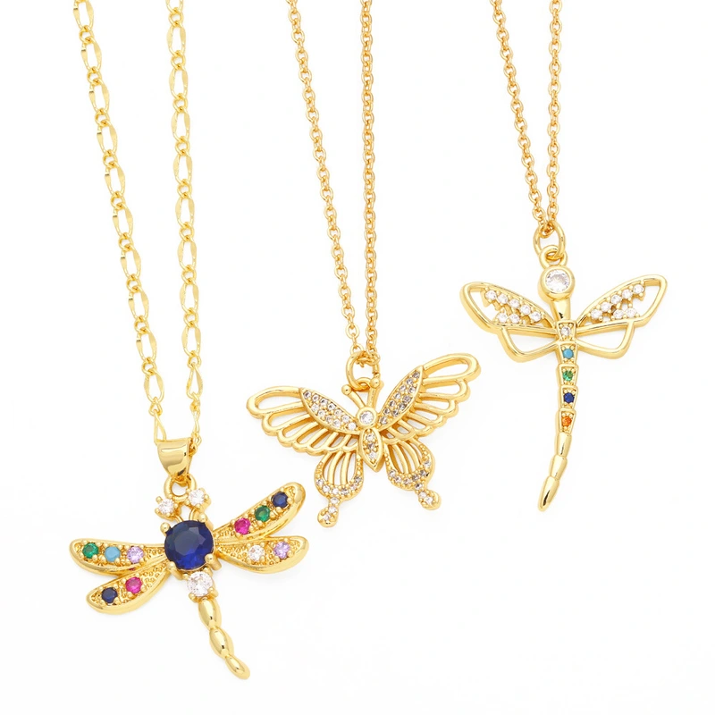 Collier libellule en zircon coloré incrusté de personnalité, chaîne de clavicule papillon de niche de luxe légère pour femme, nkw41, 2023