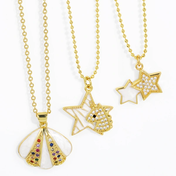 Collier licorne étoile à cinq branches, niche européenne et américaine, collier clavicule diamant goutte d'huile, collier femme, vente en gros nkp10