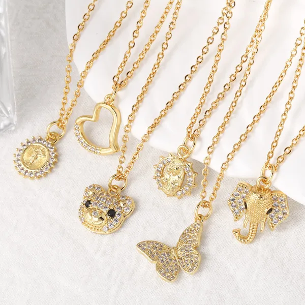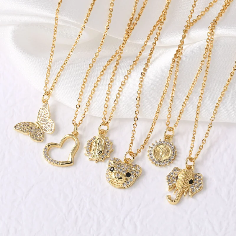 Collier Madonna en plaqué or pour femme, bijou tendance, motif éléphant et papillon, idéal pour la clavicule, nkb425