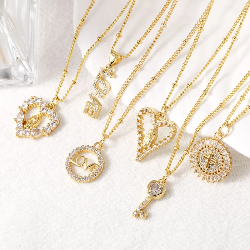 Collier Madonna plaqué or pour femme, bijou européen et américain, pendentif clé d'amour, chaîne de clavicule, nky46