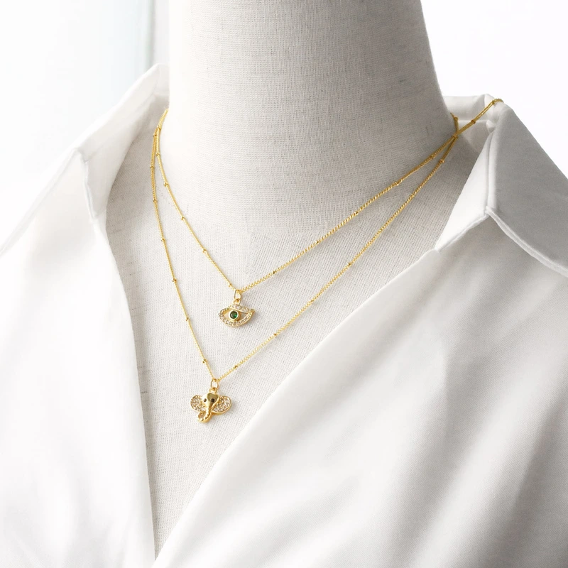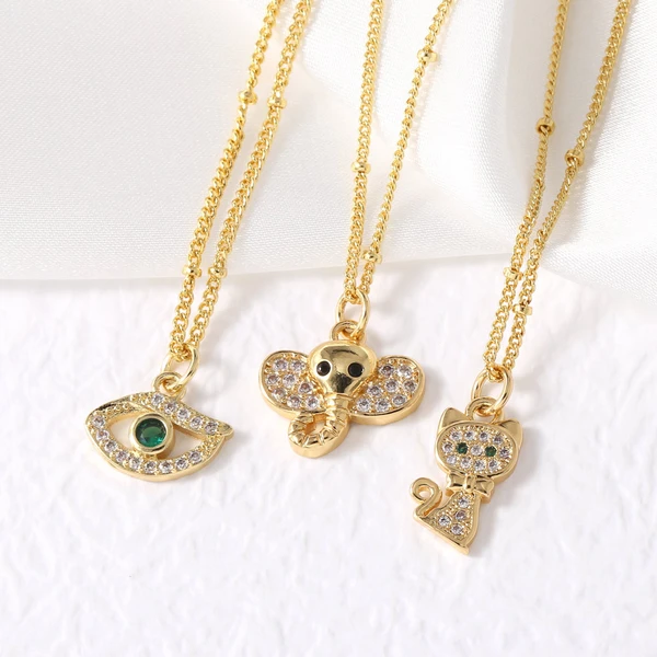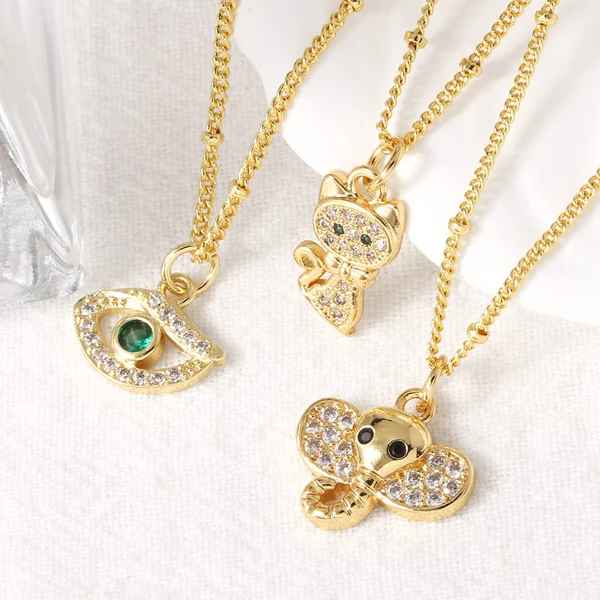 Collier œil de chaton éléphant plaqué cuivre véritable, chaîne de clavicule en or, vente à chaud, nkt77