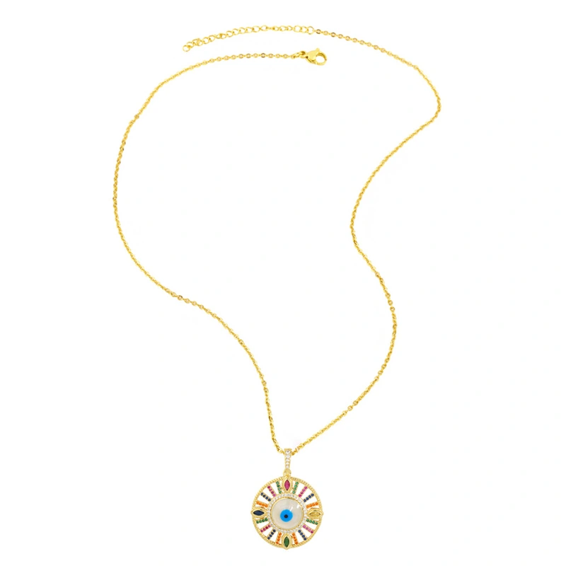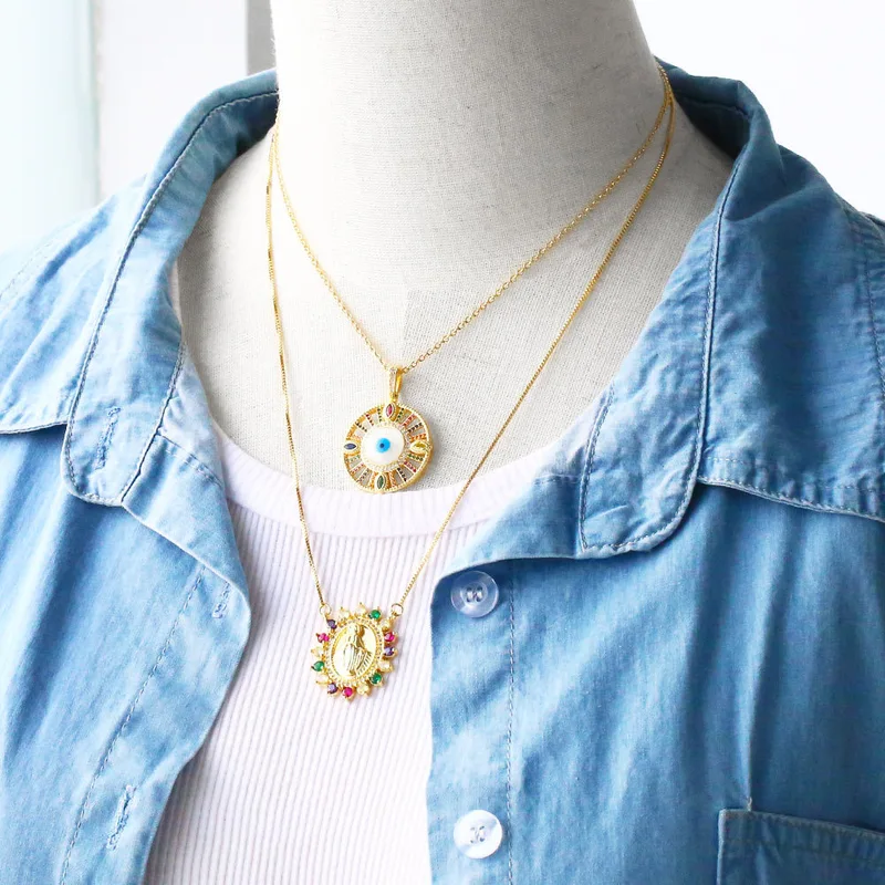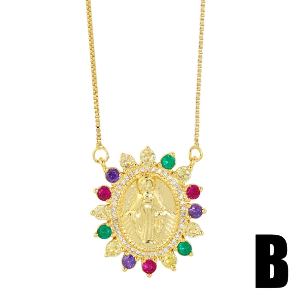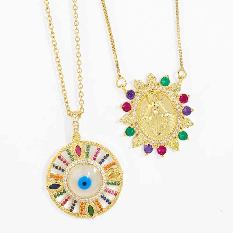 Collier œil du diable très populaire en Europe et en Amérique, micro incrusté de zircons colorés, pendentif Vierge Marie, collier personnalisé nkb771