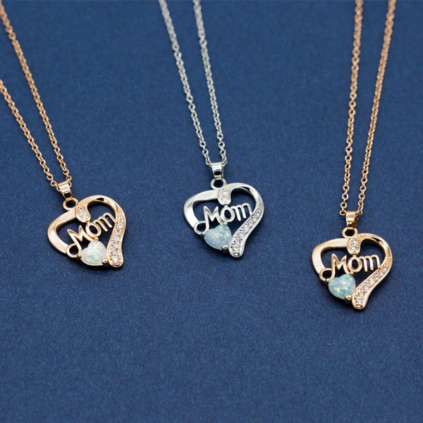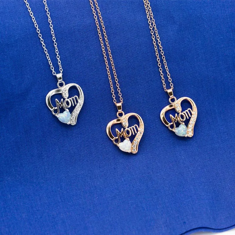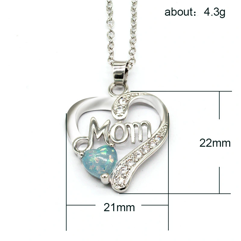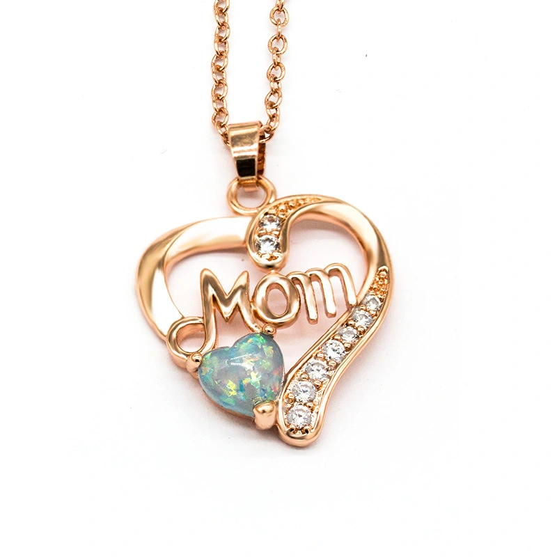 Collier opale en forme de cœur pour maman, plaqué cuivre, argent et zircon, cadeau d'anniversaire pour mère