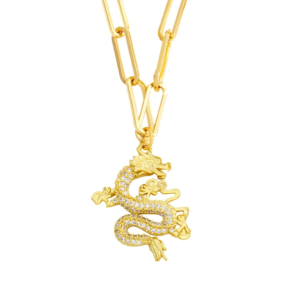 Collier papillon en liquidation, accessoires de style chinois, pendentif dragon en zircon incrusté, chaîne épaisse, chaîne de clavicule kw79