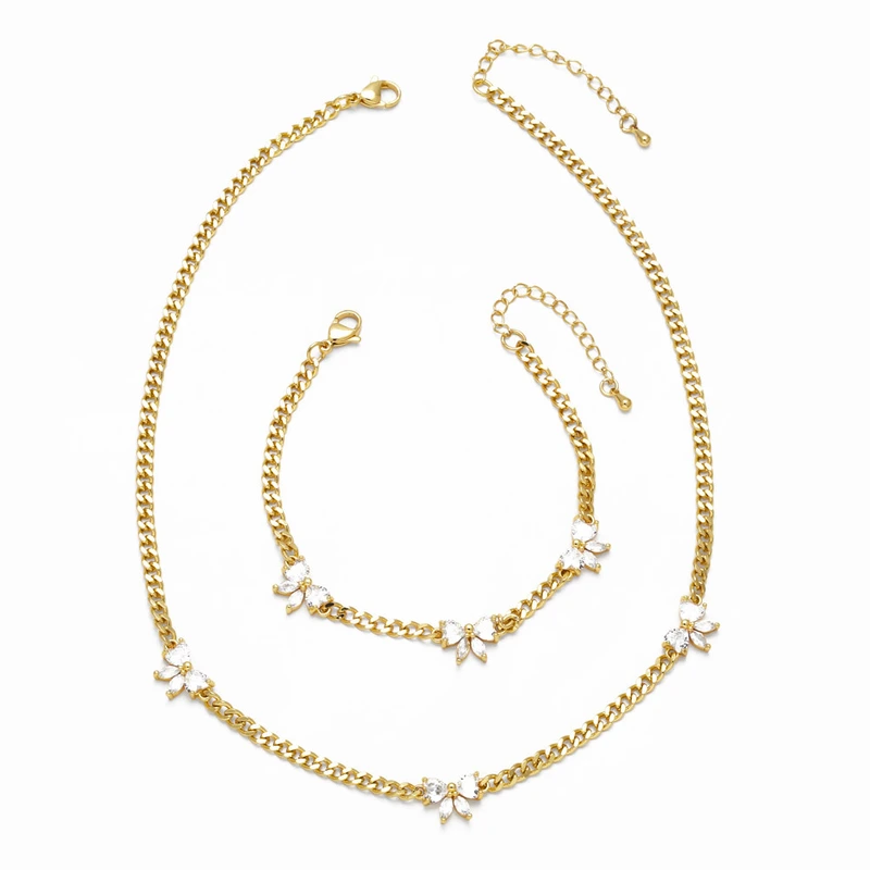 Collier papillon en plaqué cuivre véritable or incrusté de zircons, bracelet papillon, chaîne de clavicule nks95