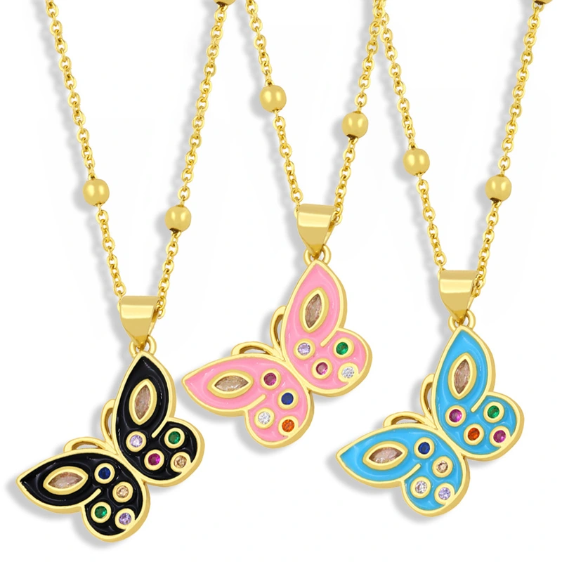 Collier papillon goutte d'huile pour femme, chaîne de clavicule simple, nouvelle mode européenne et américaine, bijoux nkz47