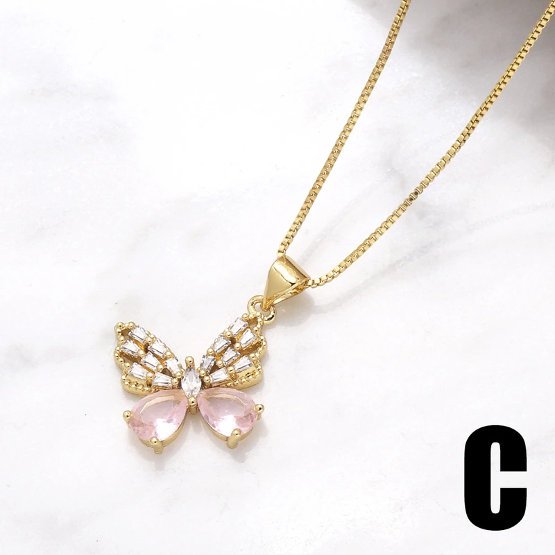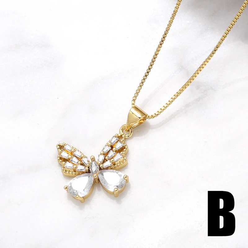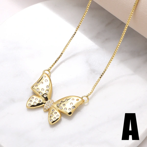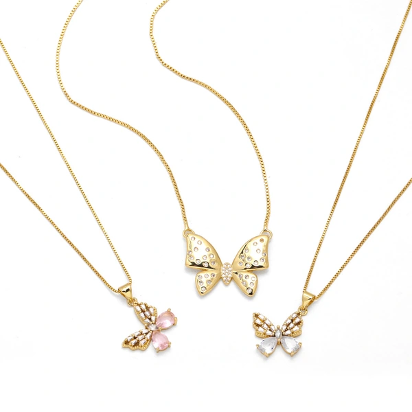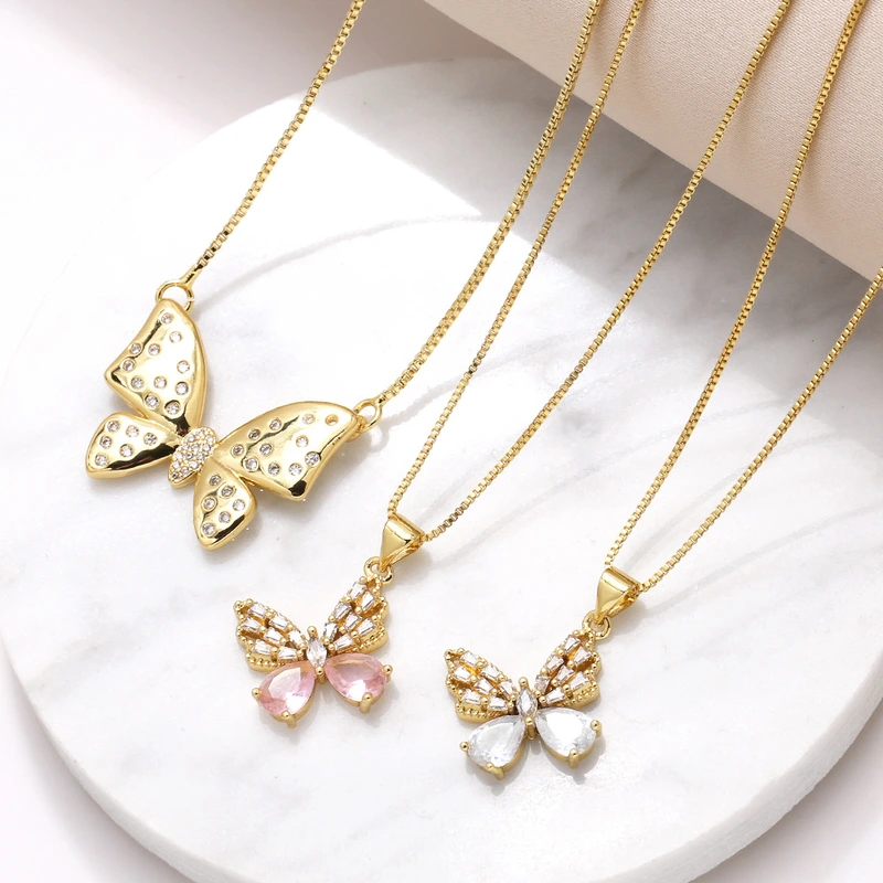 Collier papillon plaqué cuivre véritable or, chaîne de clavicule en zircone nkw80