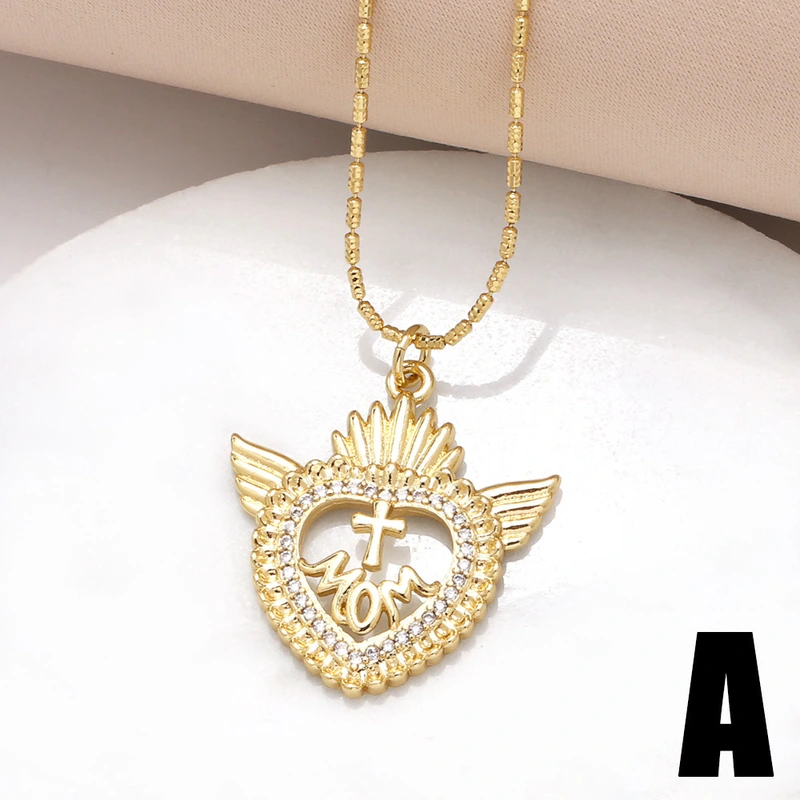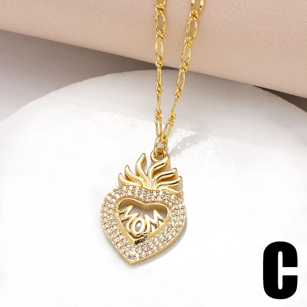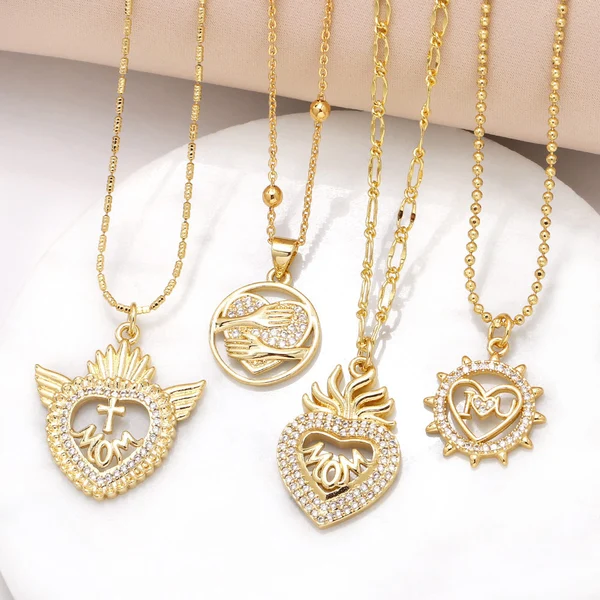 Collier pendentif amour fête des mères européen et américain pour femme, chaîne de clavicule en cuivre plaqué or véritable incrusté de zircons, nkb759
