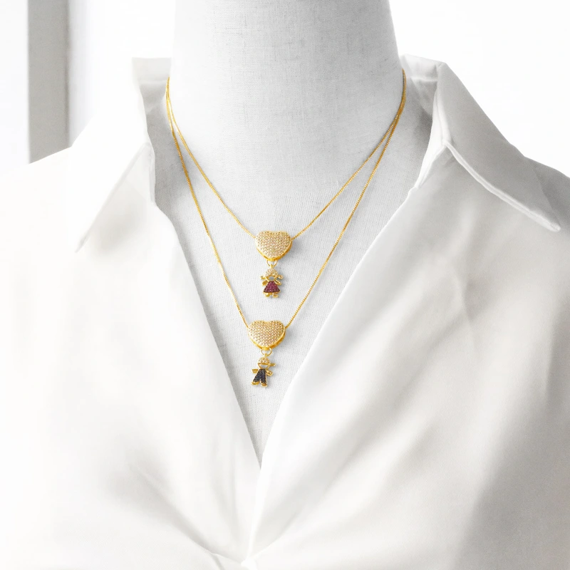 Collier pendentif amour garçon et fille en zircon incrusté de style européen et américain, chaîne de clavicule simple à la mode nkb809