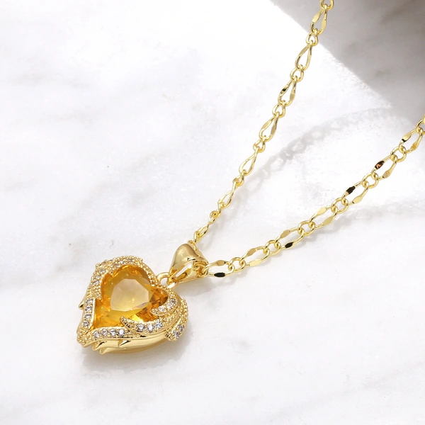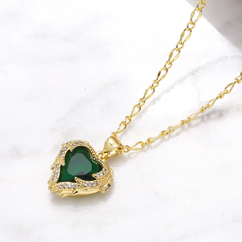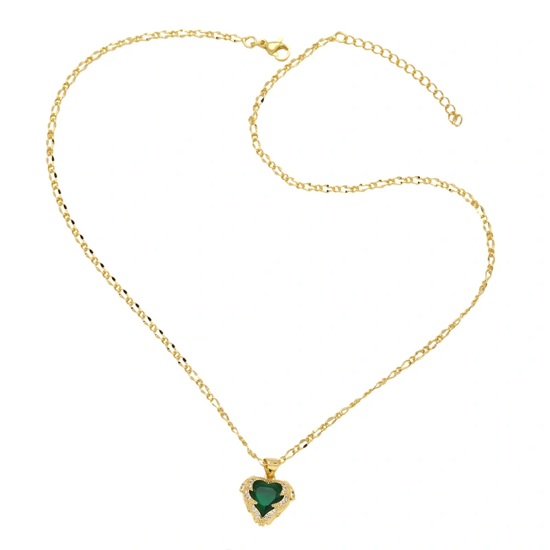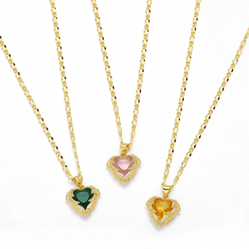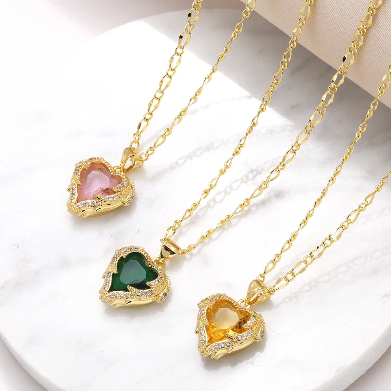Collier pendentif amour plaqué or avec chaîne de clavicule en zircon coloré nkw98
