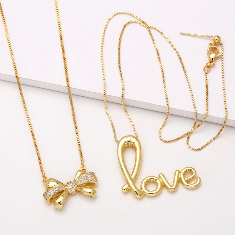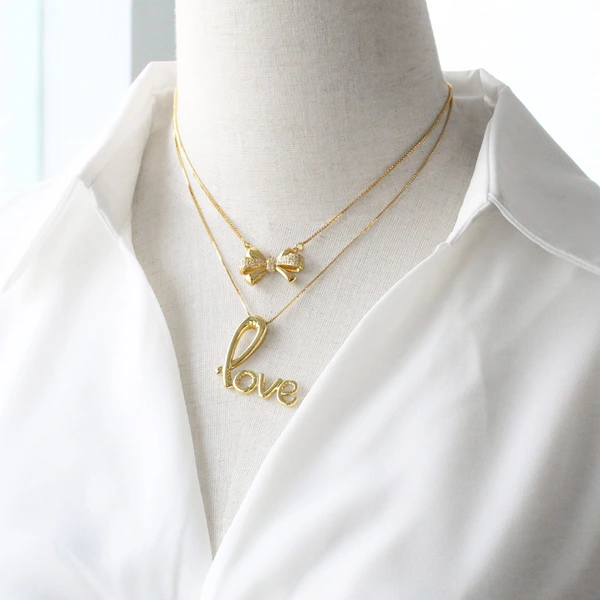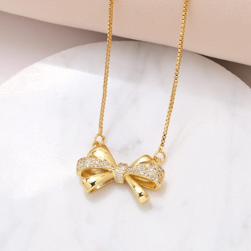 Collier pendentif arc européen et américain femme brésilienne Saint Valentin amour plaqué or zircon clavicule chaîne nkr10