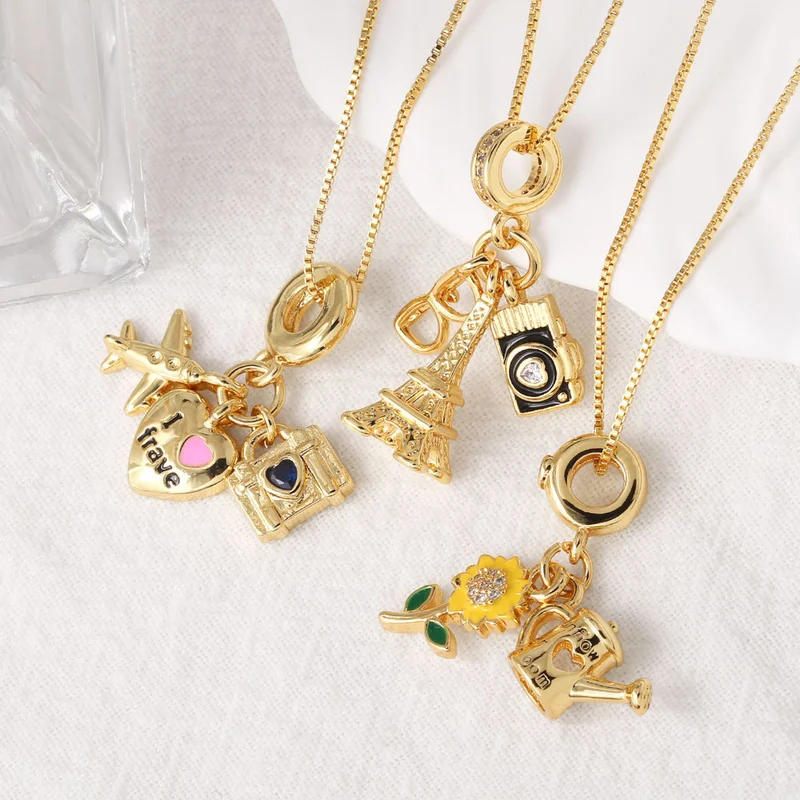 Collier pendentif avion plaqué or pour femme, bijou tendance en Europe et aux États-Unis, NKB594
