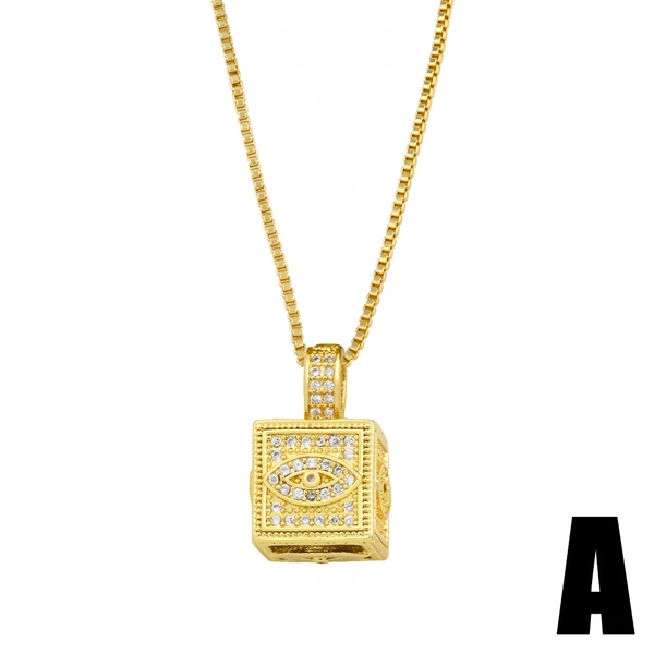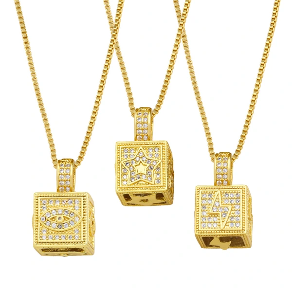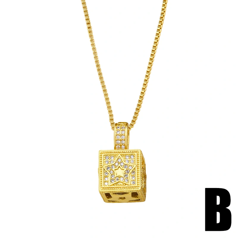 Collier pendentif carré géométrique créatif européen et américain, personnalité hip-hop, foudre, lune, étoile, bijoux tendance nkz50