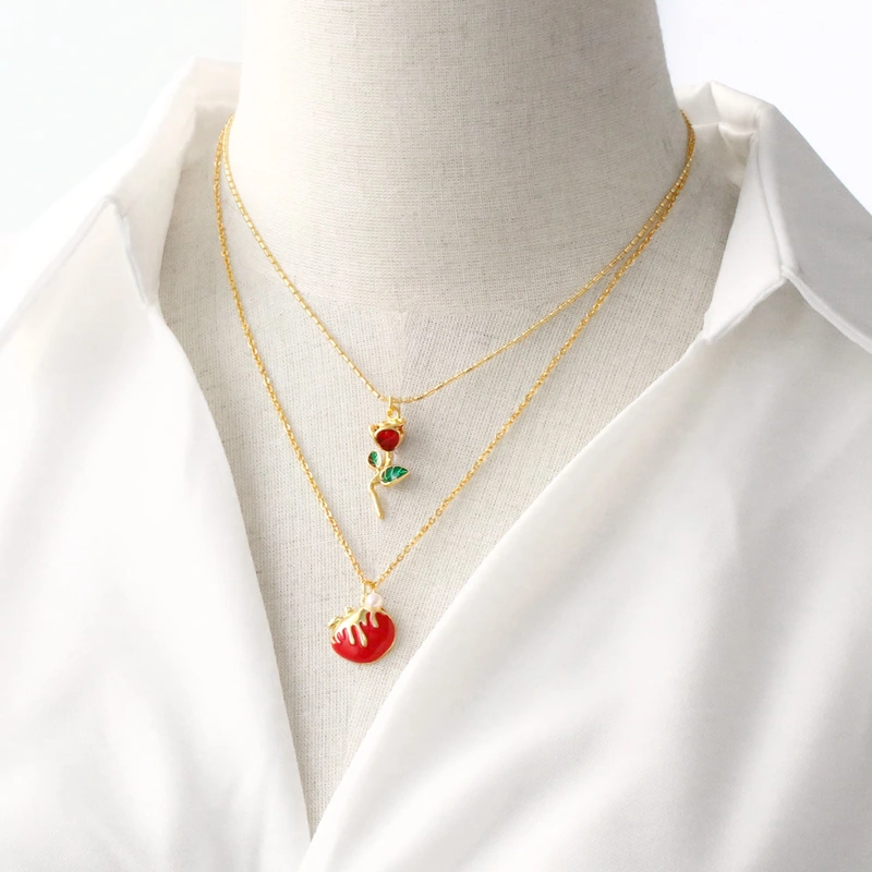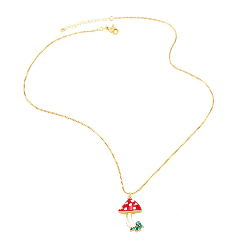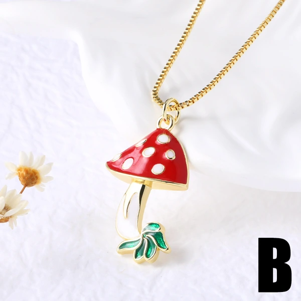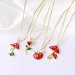 Collier pendentif champignon rouge tridimensionnel pour femme, plaqué or, chaîne de clavicule en forme de goutte d'huile, nky27