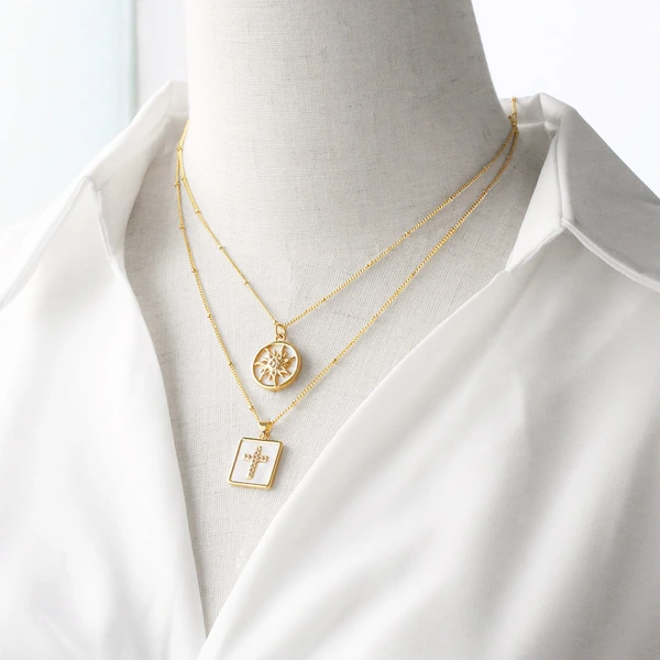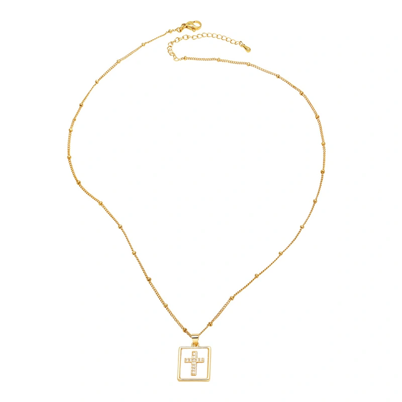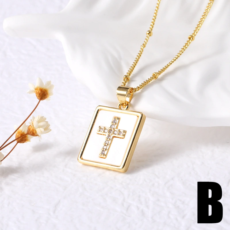 Collier pendentif croix cœur coquillage plaqué cuivre 18 carats, chaîne de clavicule, très populaire en Europe et aux États-Unis, nks48