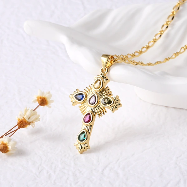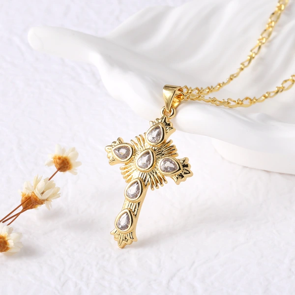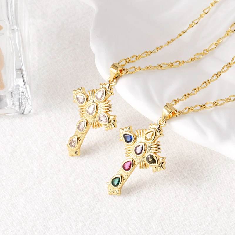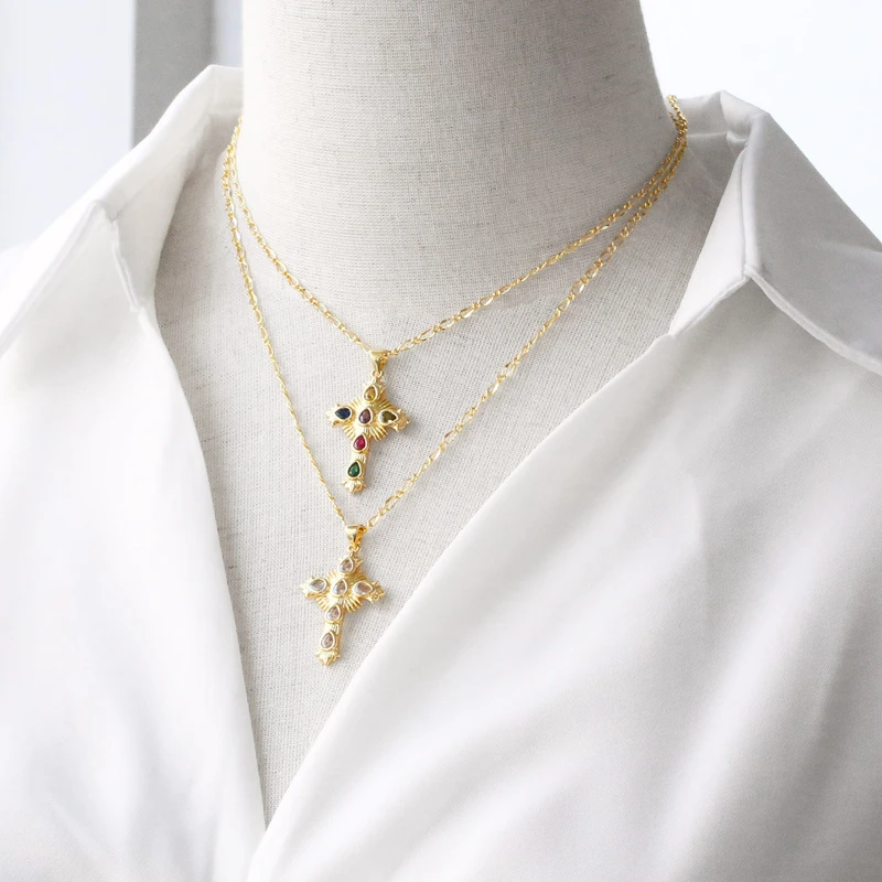 Collier pendentif croix haut de gamme plaqué or véritable, chaîne de clavicule, style tendance, liquidation, nkb715