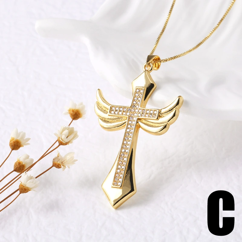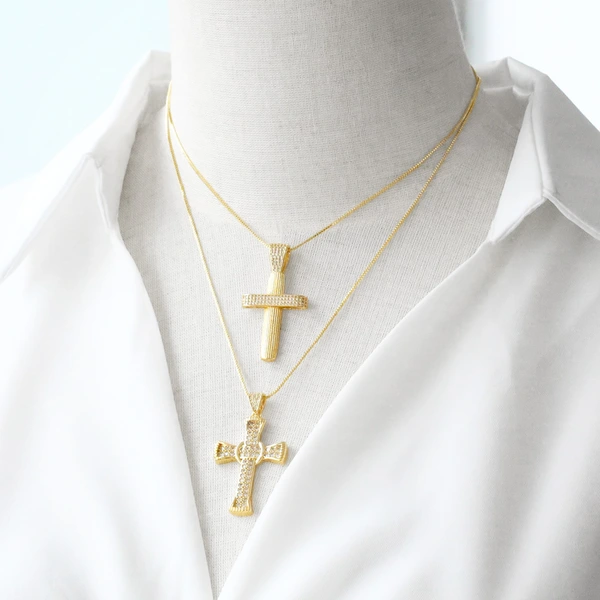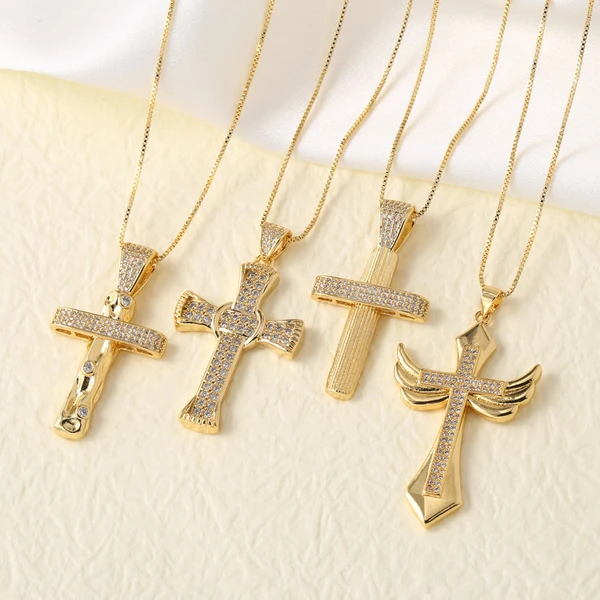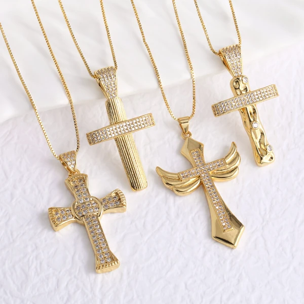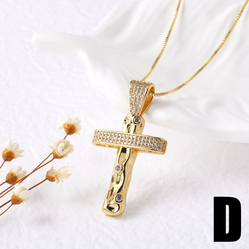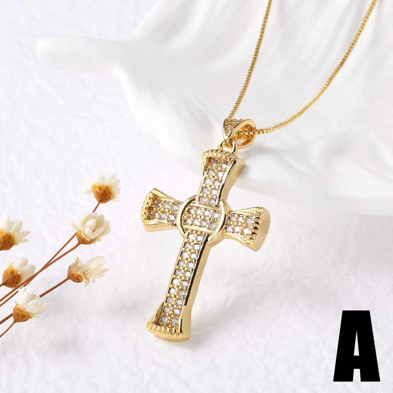 Collier pendentif croix hip-hop européen et américain plaqué or avec zircon, chaîne de clavicule, collier nkn99