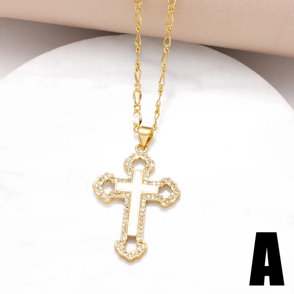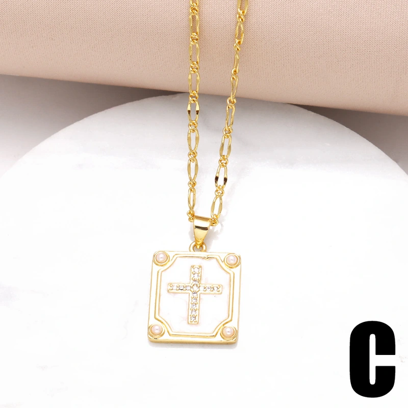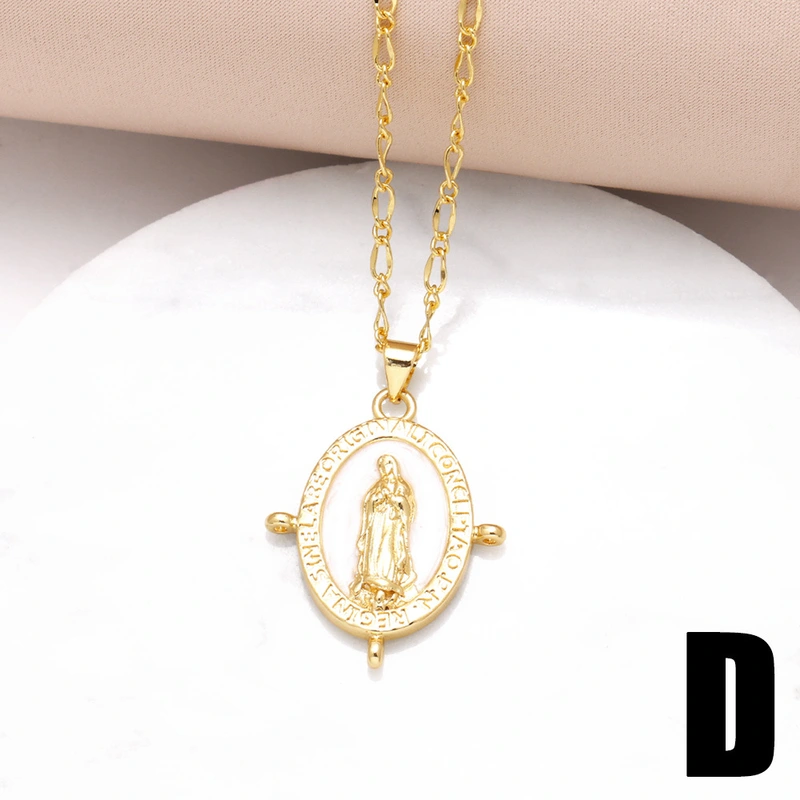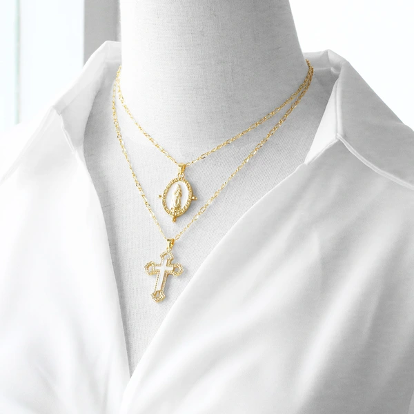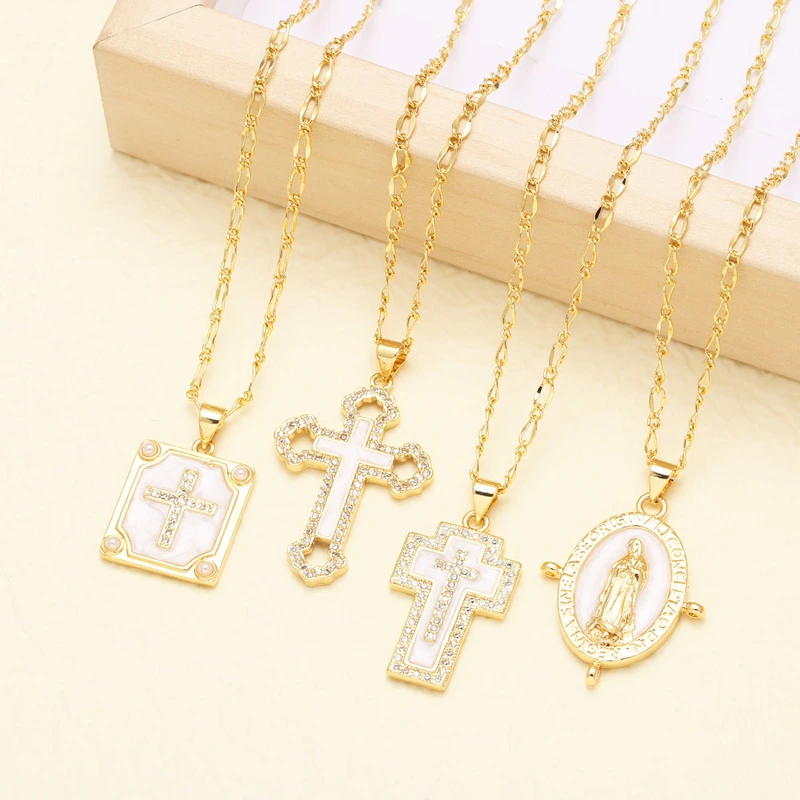 Collier pendentif croix Madonna en plaqué cuivre véritable or, chaîne de pull polyvalente nkw05