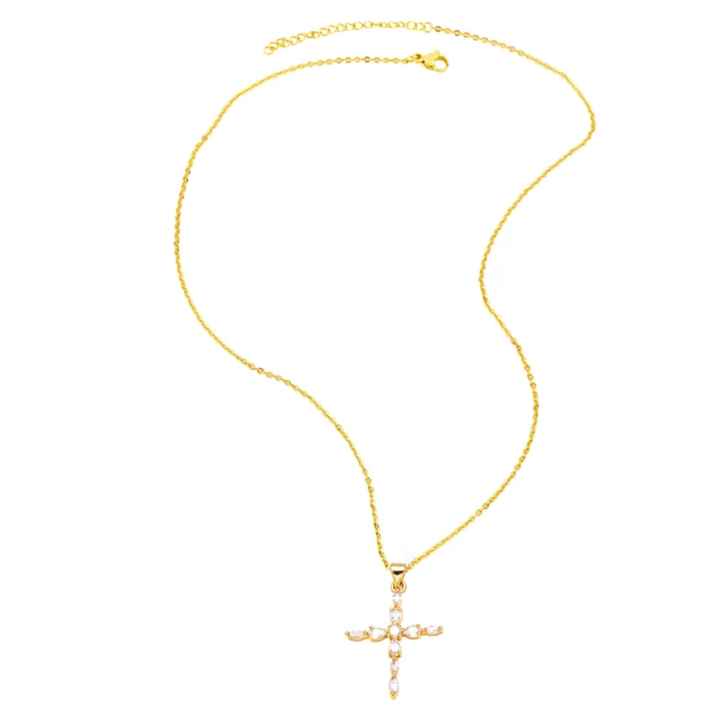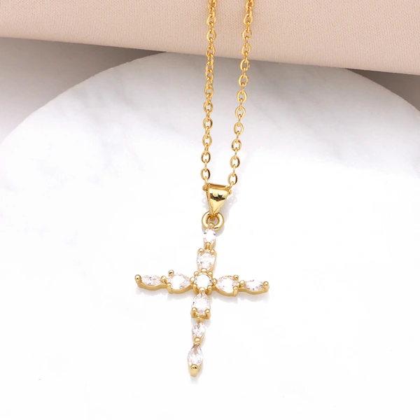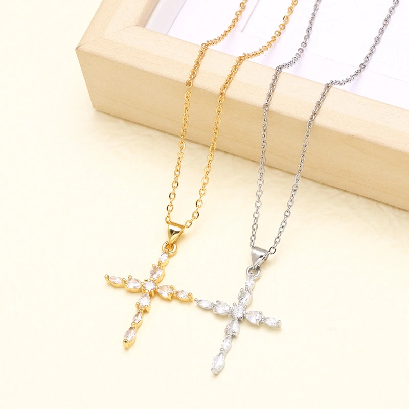 Collier pendentif croix plaqué or pour femme, chaîne de clavicule en zircon micro-incrusté, tendance, nkb591