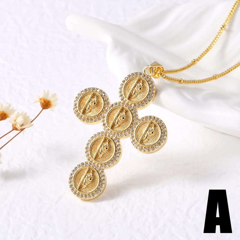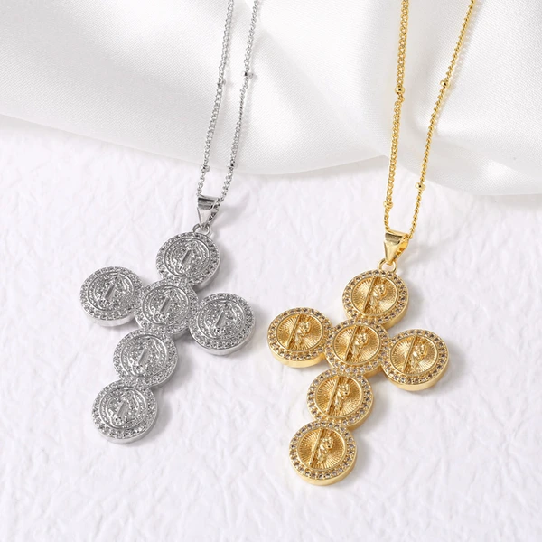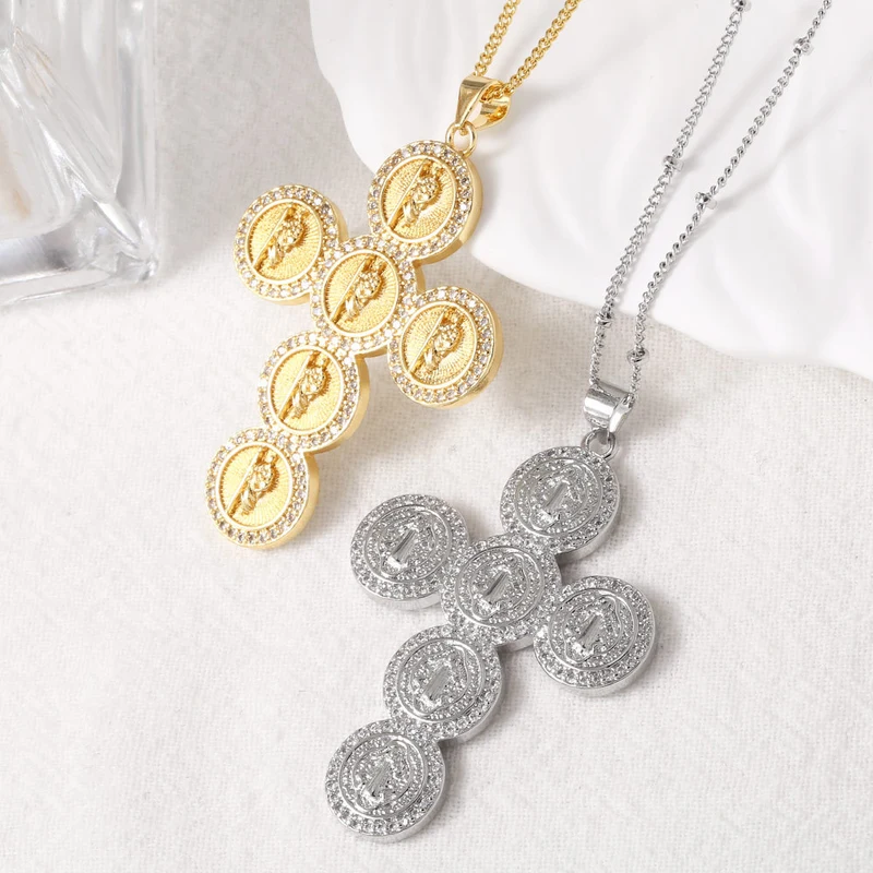 Collier pendentif croix vierge marie plaqué or, chaîne de clavicule rétro nkz92